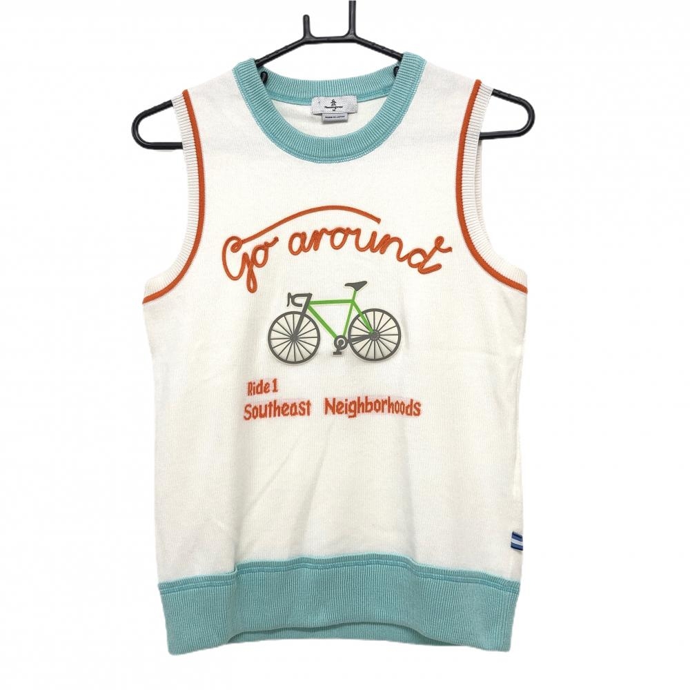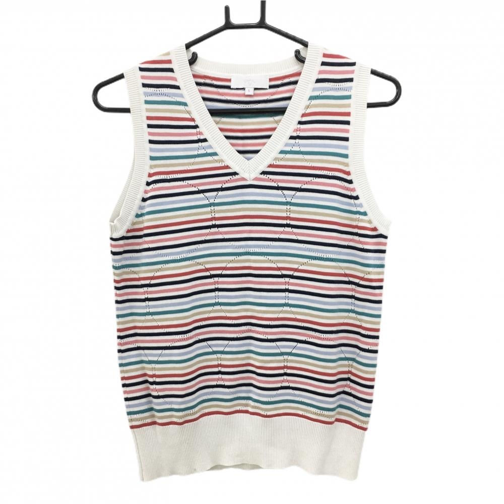 パーリーゲイツ ニットベスト アイボリー×ブルーグリーン系 ウール混 レディース 0(S) ゴルフウェア PEARLY GATES