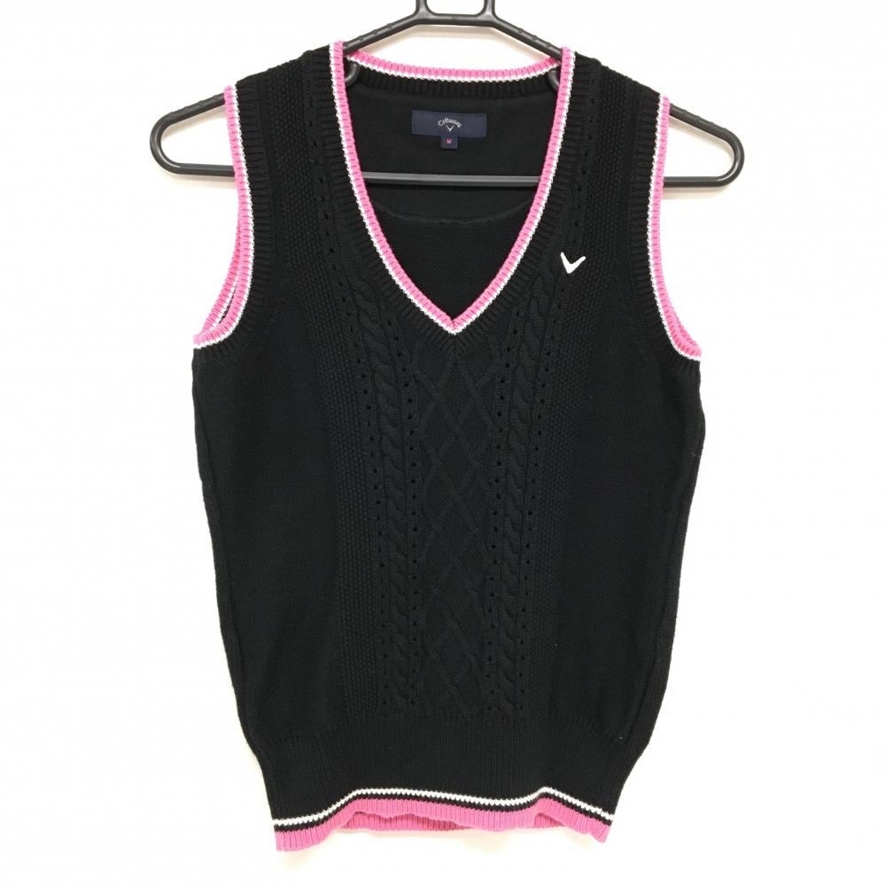 【新品】キャロウェイ ニットベスト 白×ピンク ケーブル編み 撥水 レディース L ゴルフウェア Callaway