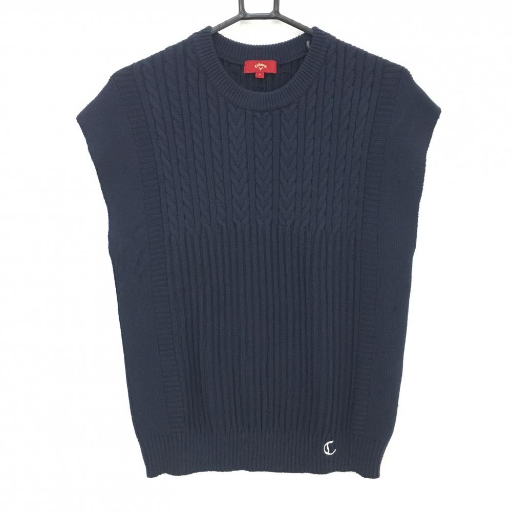 【美品】キャロウェイ ニットベスト ブルー系×ネイビー ロゴ刺しゅう ポリエステル100% メンズ L ゴルフウェア Callaway