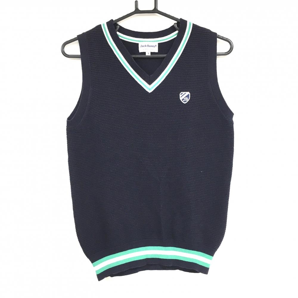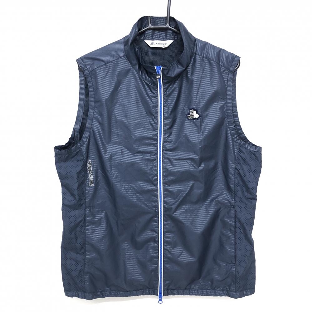 【超美品】ジャックバニー ナイロンベスト ネイビー×白 ダブルジップ 裏地メッシュ メンズ 4(M) ゴルフウェア Jack Bunny