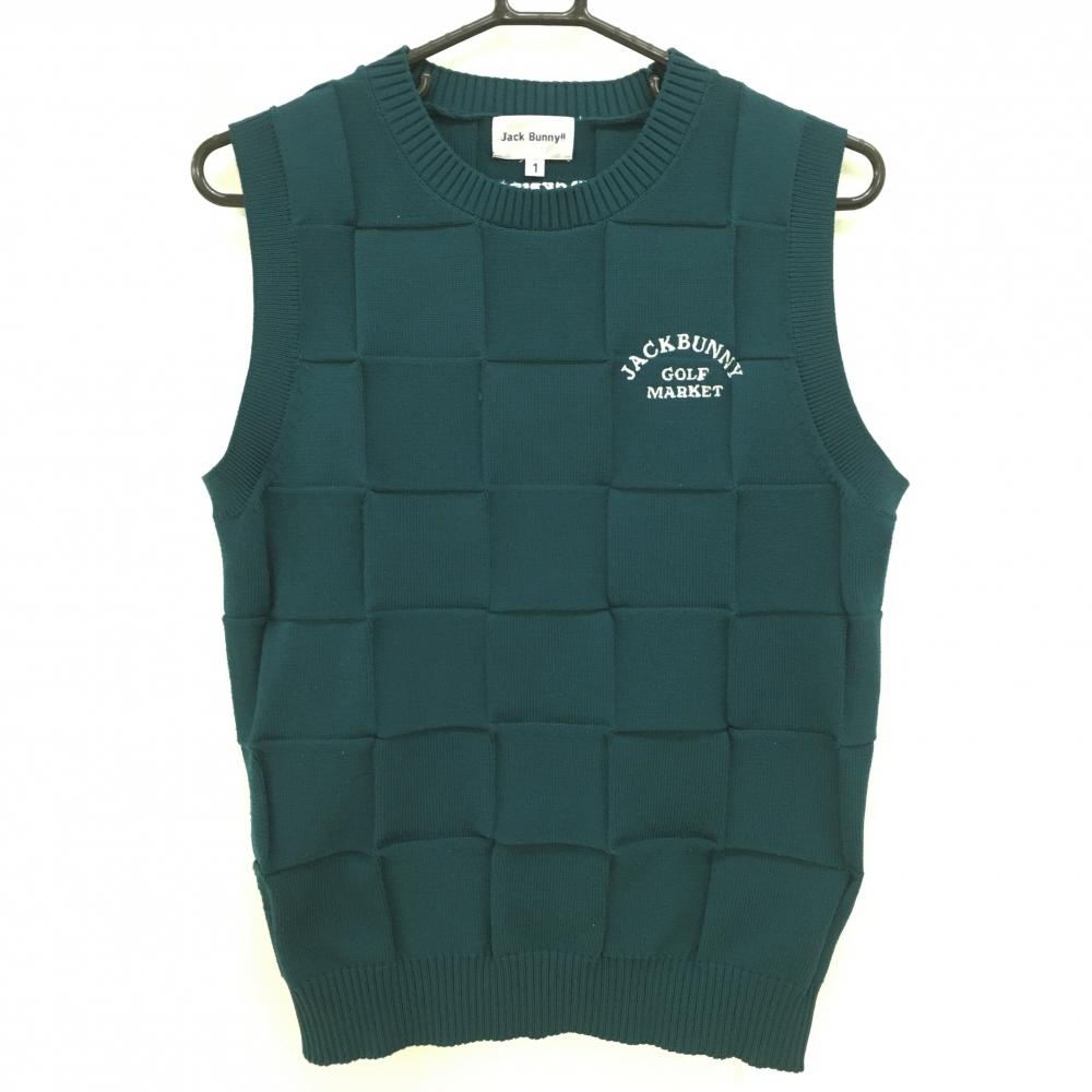 【超美品】ジャックバニー ニットベスト 白×黒 グレンチェック ワッペン Vネック レディース 1(M) ゴルフウェア Jack Bunny