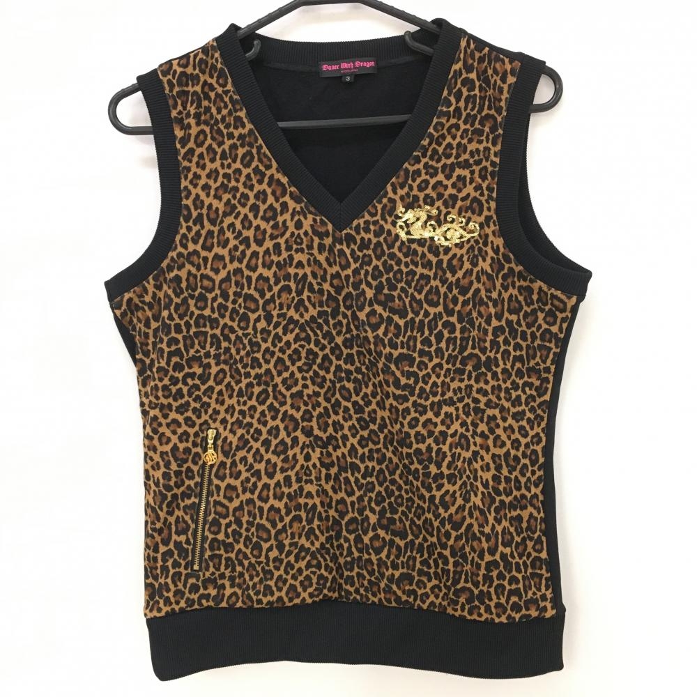 【超美品】ラッセルノ フード付リバーシブルボアベスト 黒 裏ブラウン レオパード柄 レディース M ゴルフウェア RUSSELUNO