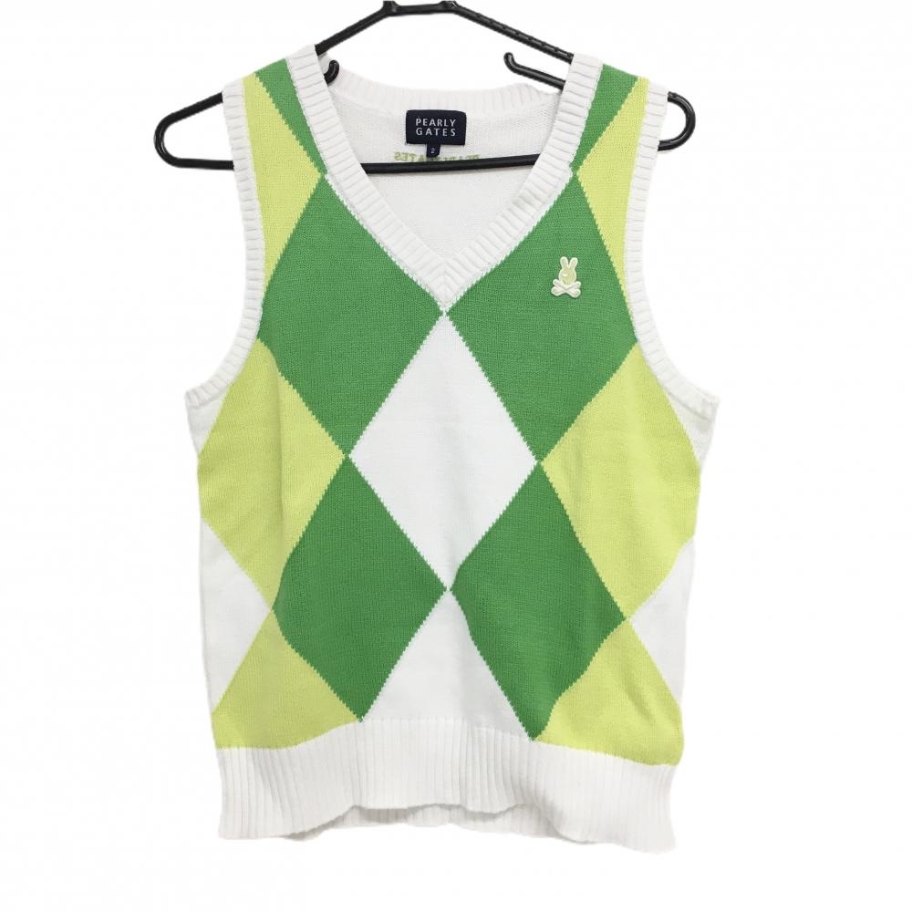 【超美品】パーリーゲイツ リバーシブルジップベスト グリーン×白 ニット レディース 2(L) ゴルフウェア 2023年モデル PEARLY GATES