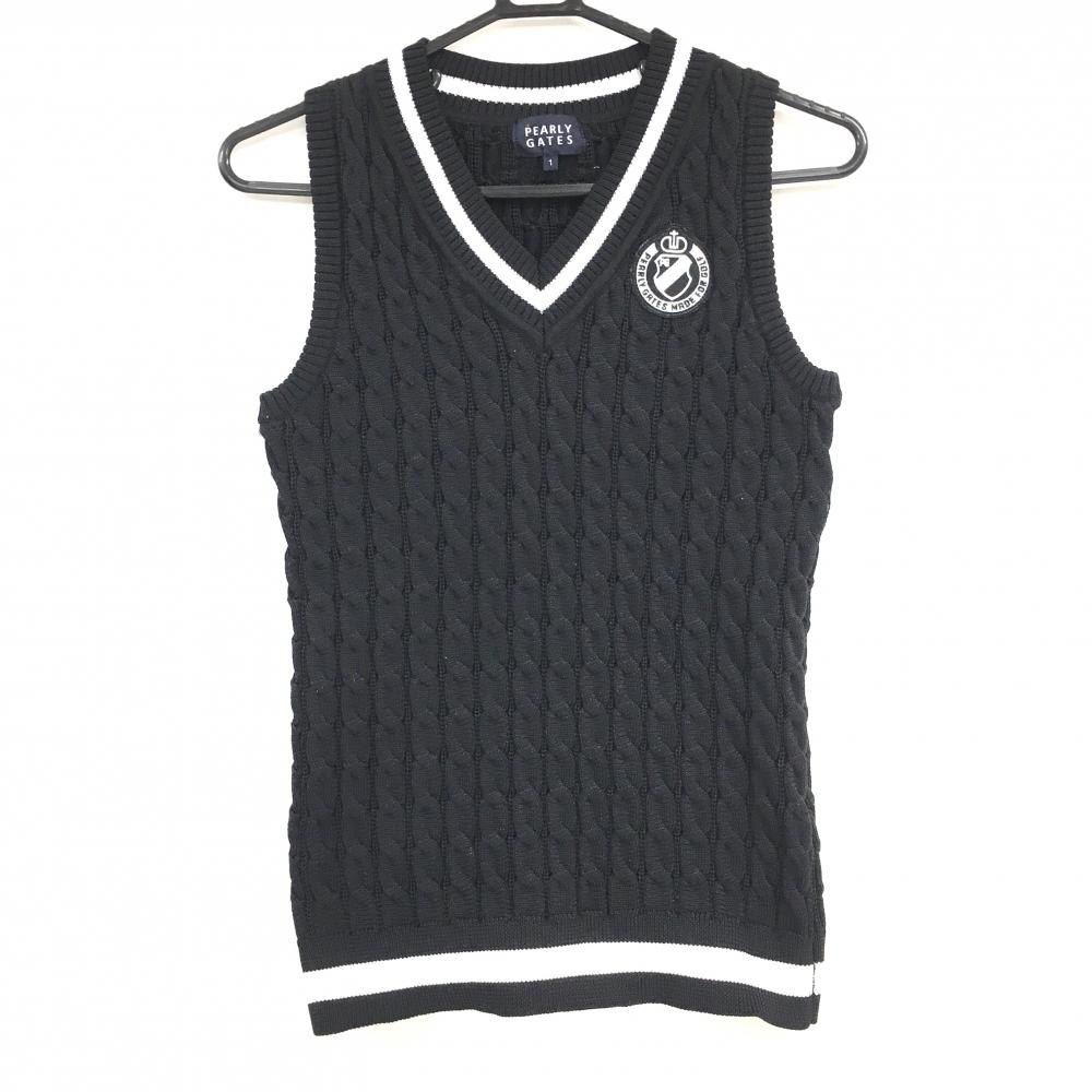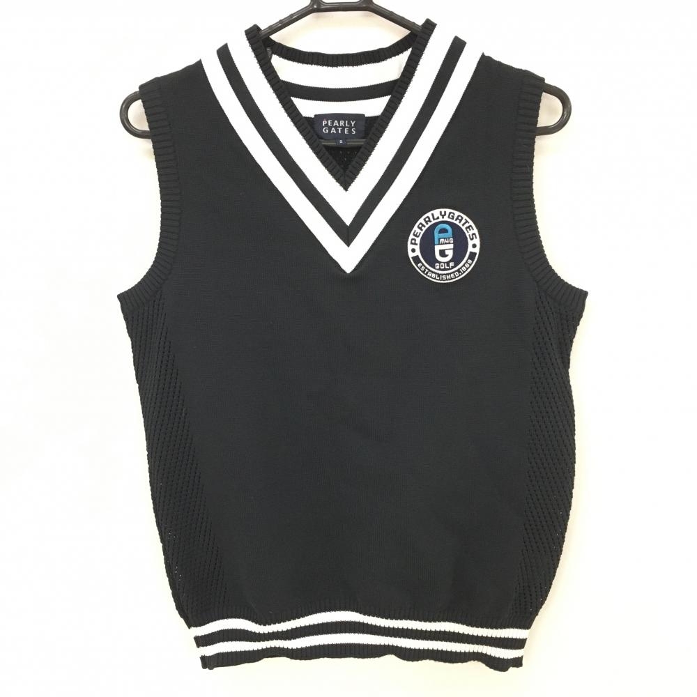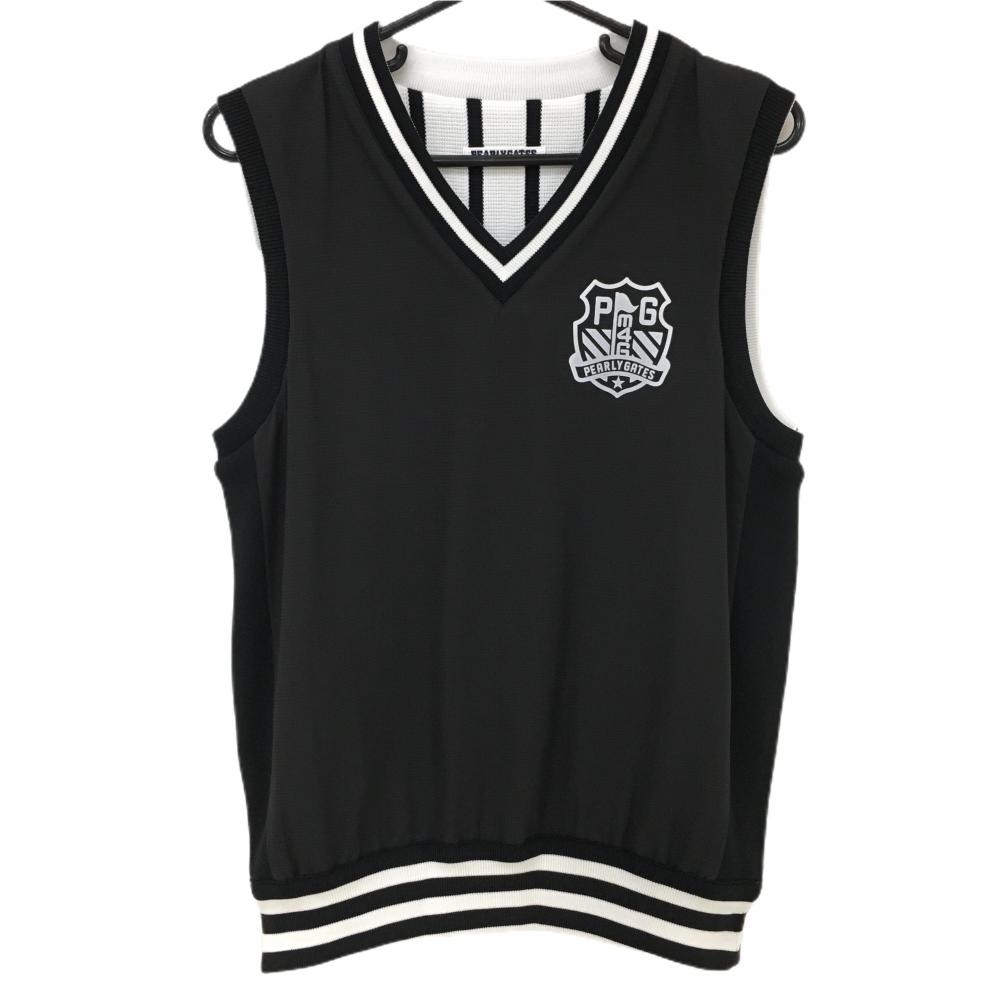 【美品】パーリーゲイツ ボアベスト 黒×白 裏微起毛 裾ライン 3ポケット レディース 1(M) ゴルフウェア PEARLY GATES