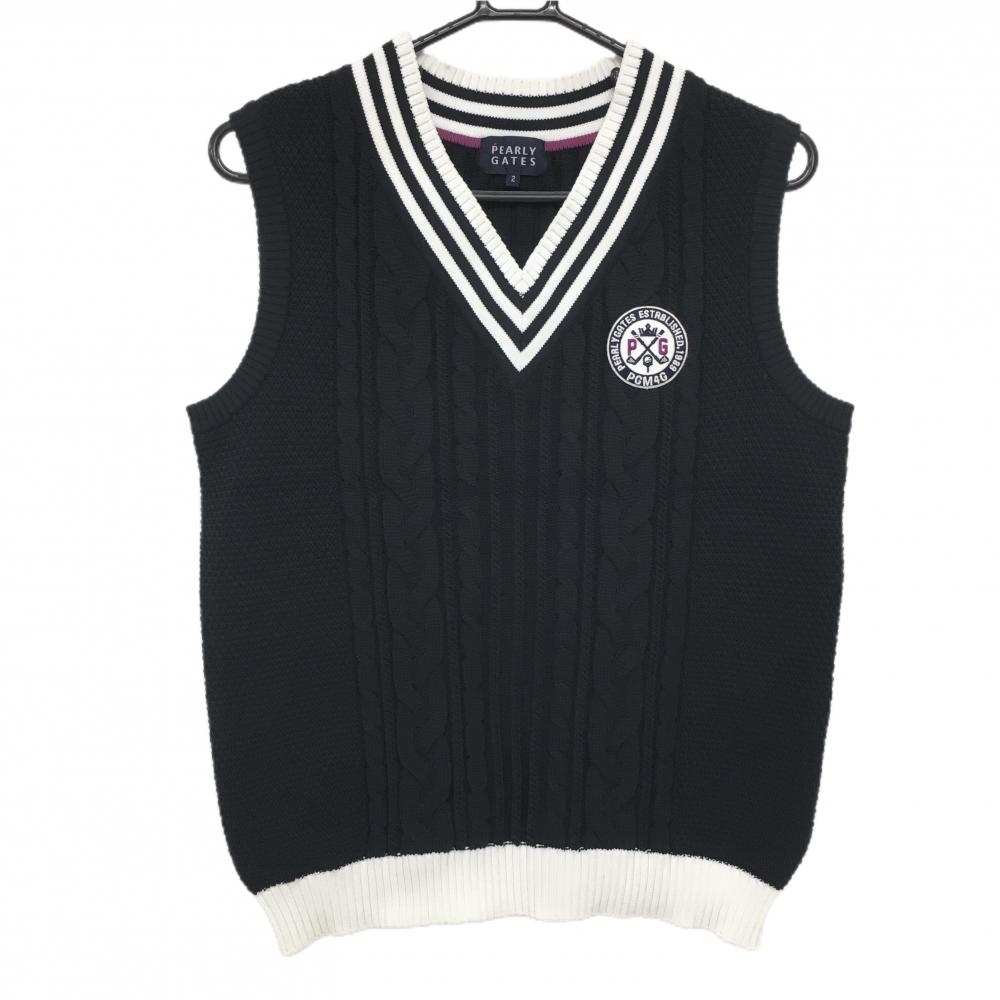 【超美品】パーリーゲイツ ニットベスト ネイビー×白 Vネック ケーブル編み メンズ 5(L) ゴルフウェア PEARLY GATES