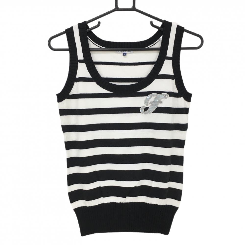 【美品】フィッチェゴルフ×Wacky Races ニットベスト 白×黒 前総柄 レディース M ゴルフウェア FICCE GOLF