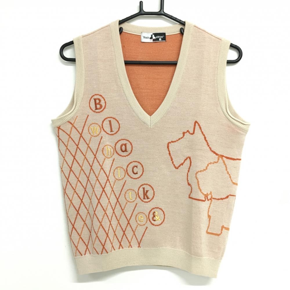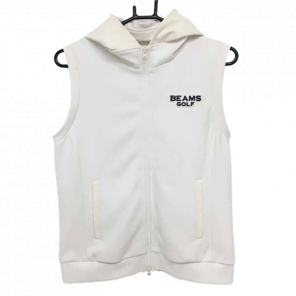 ビームスゴルフ ニットベスト 白×黒 ワッペン 裾ライン レディース L ゴルフウェア 2024年モデル BEAMS GOLF