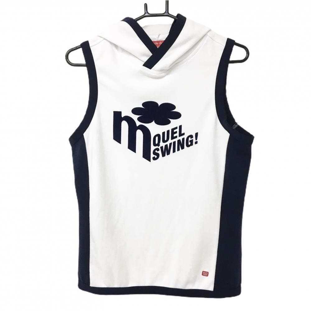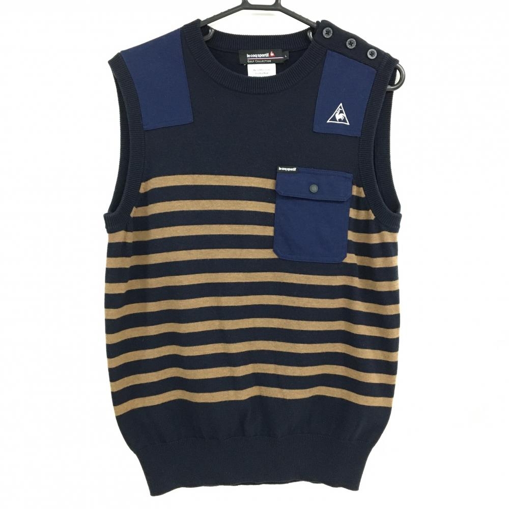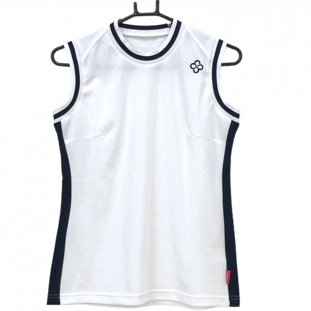 【超美品】ルコックゴルフ ボアベスト 白×ネイビー ロゴ刺しゅう レディース M ゴルフウェア le coq sportif