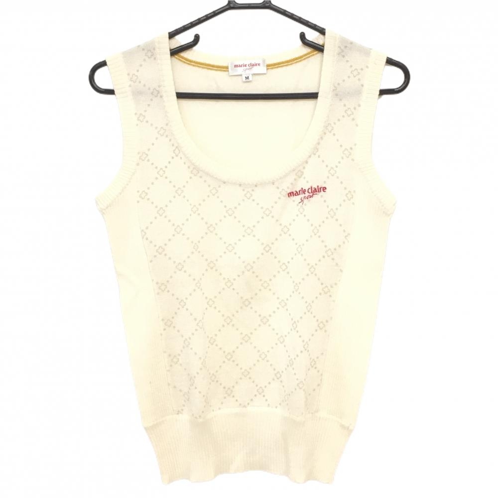 アルチビオ ニットベスト サーモンピンク×白 背面透かし編み レディース 36(S) ゴルフウェア archivio