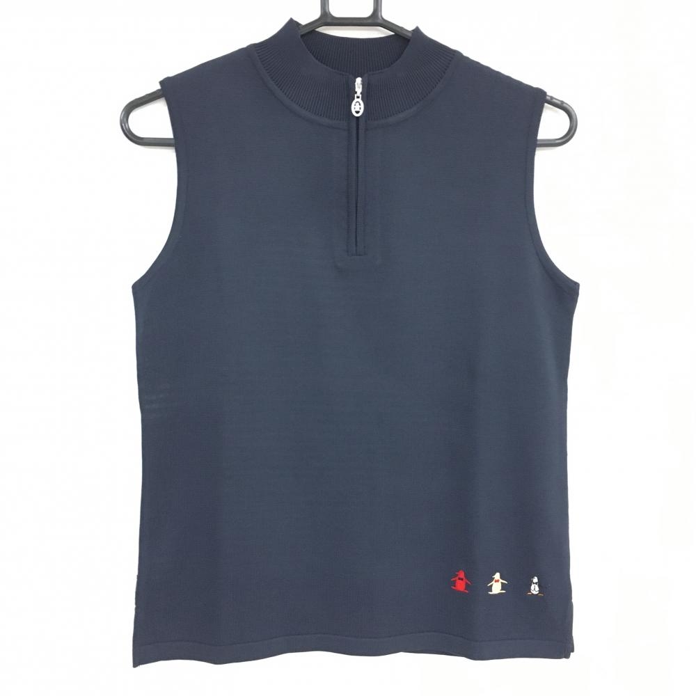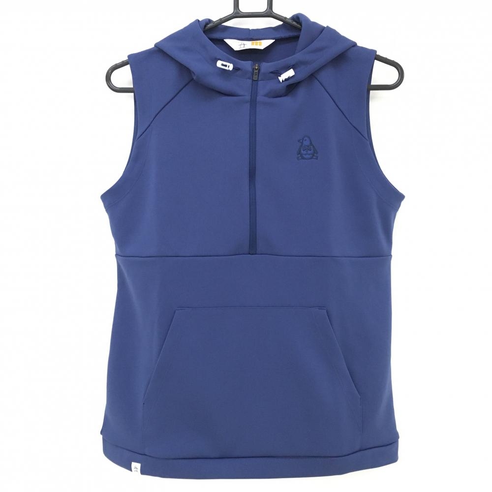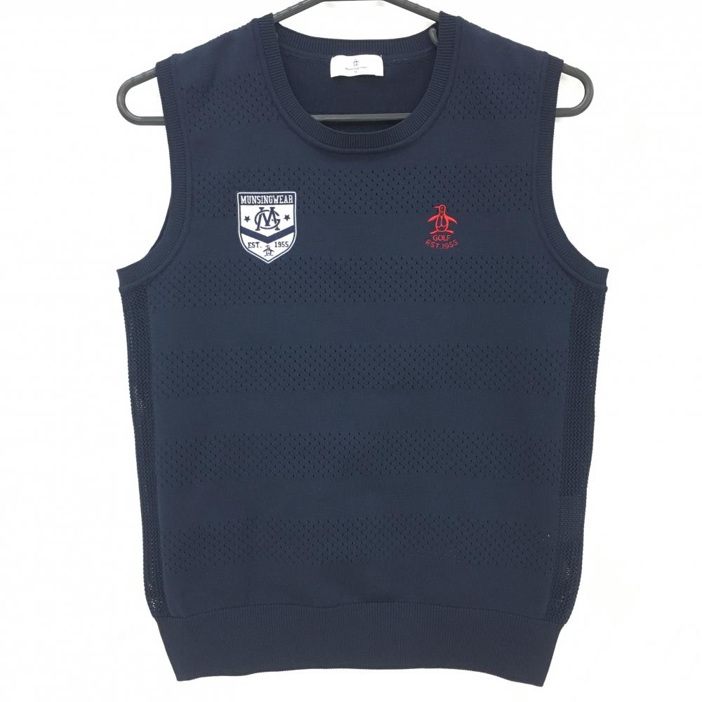 【超美品】マンシングウェア フード付アウターベスト ネイビー 裏地メッシュ 3ポケット レディース L ゴルフウェア Munsingwear