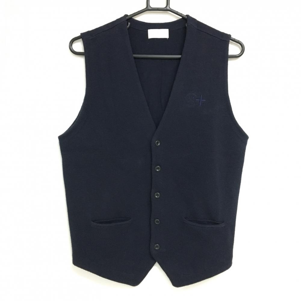 ビームスゴルフ ニットベスト 黒×ネイビー ネック・裾ライン Vネック メンズ L ゴルフウェア BEAMS GOLF