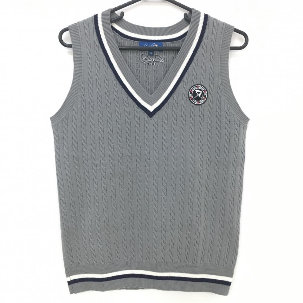 ジャックバニー ニットベスト ライトグレー×白 フロントロゴ ポリエステル100% レディース 0(S) ゴルフウェア Jack Bunny