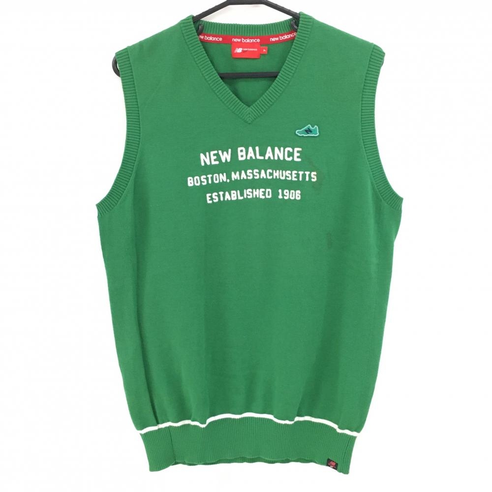 【新品】ニューバランスゴルフ ニットベスト ライトグリーン×白 胸元ロゴ レディース 2(L) ゴルフウェア 2023年モデル New Balance