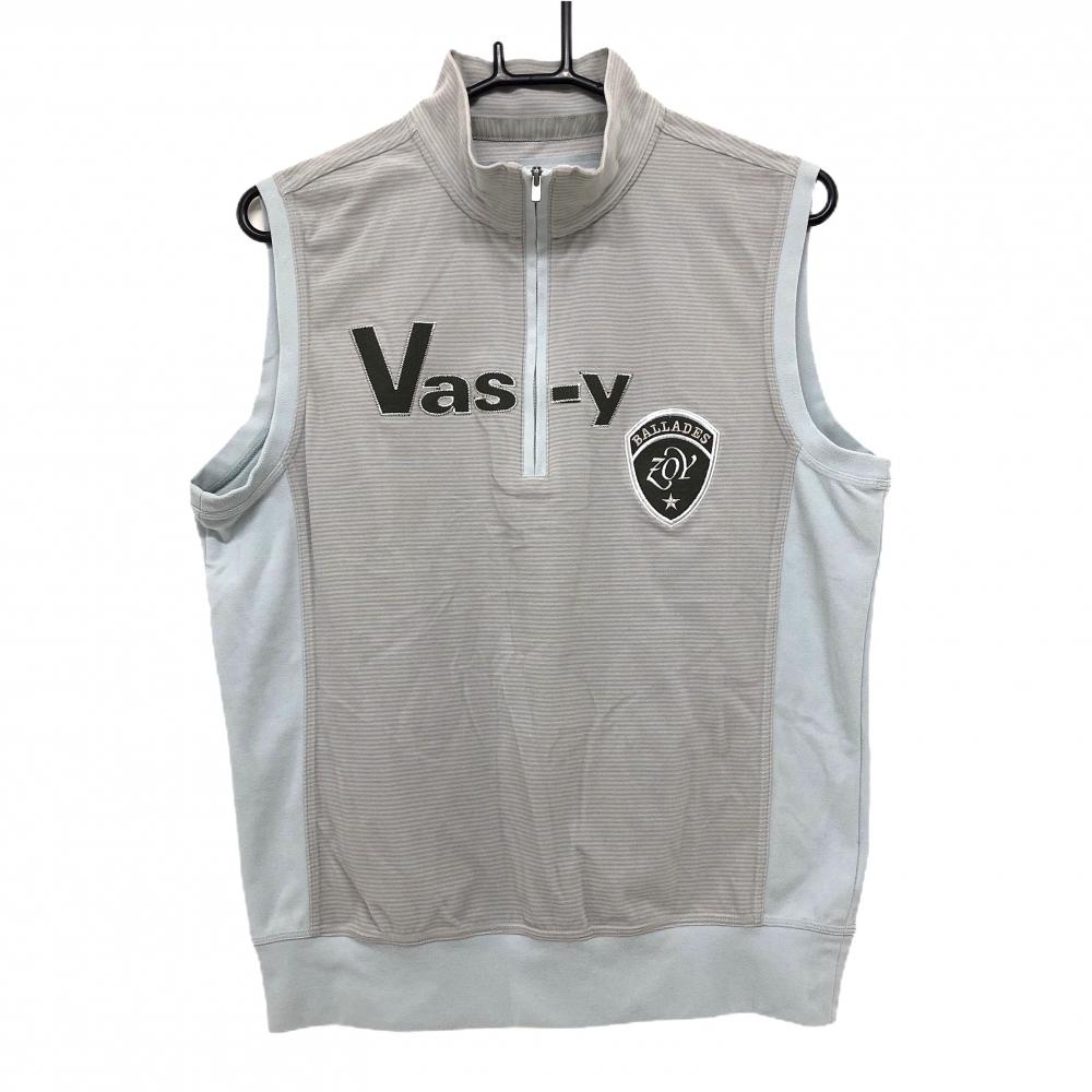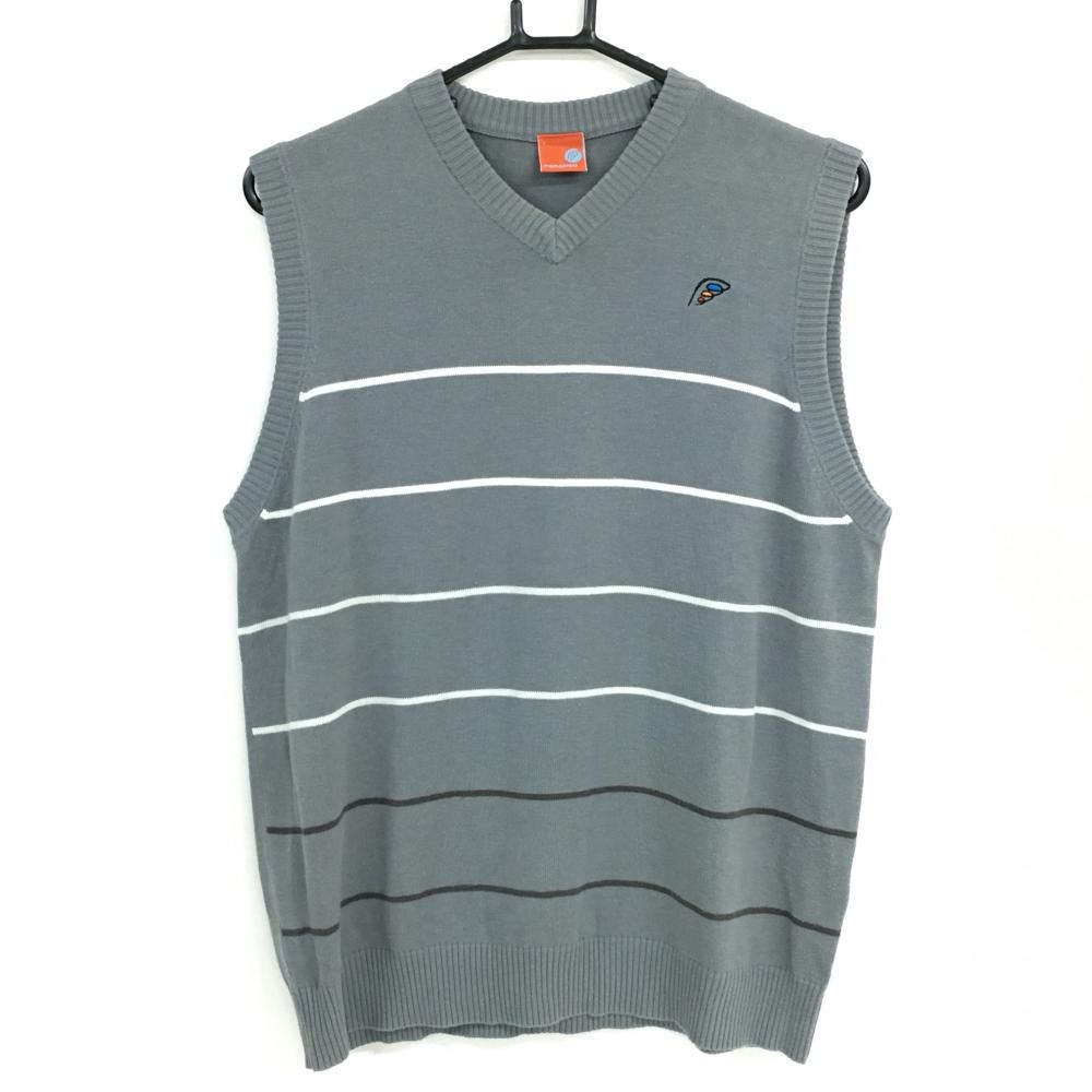 【美品】フットジョイ アウターベスト グレー×ブルー ハーフジップ ロゴ刺しゅう メンズ L ゴルフウェア FootJoy