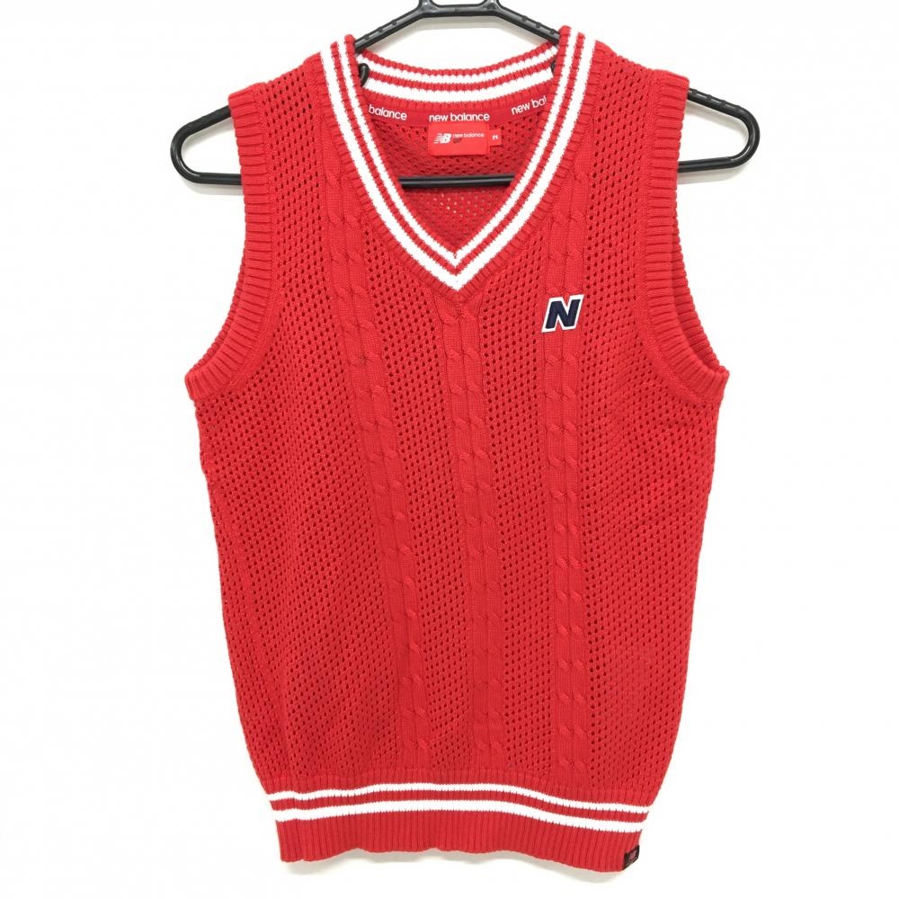 アルチビオ ニットベスト 黒×レッド×白 背面透かし編み レディース 38(M) ゴルフウェア archivio