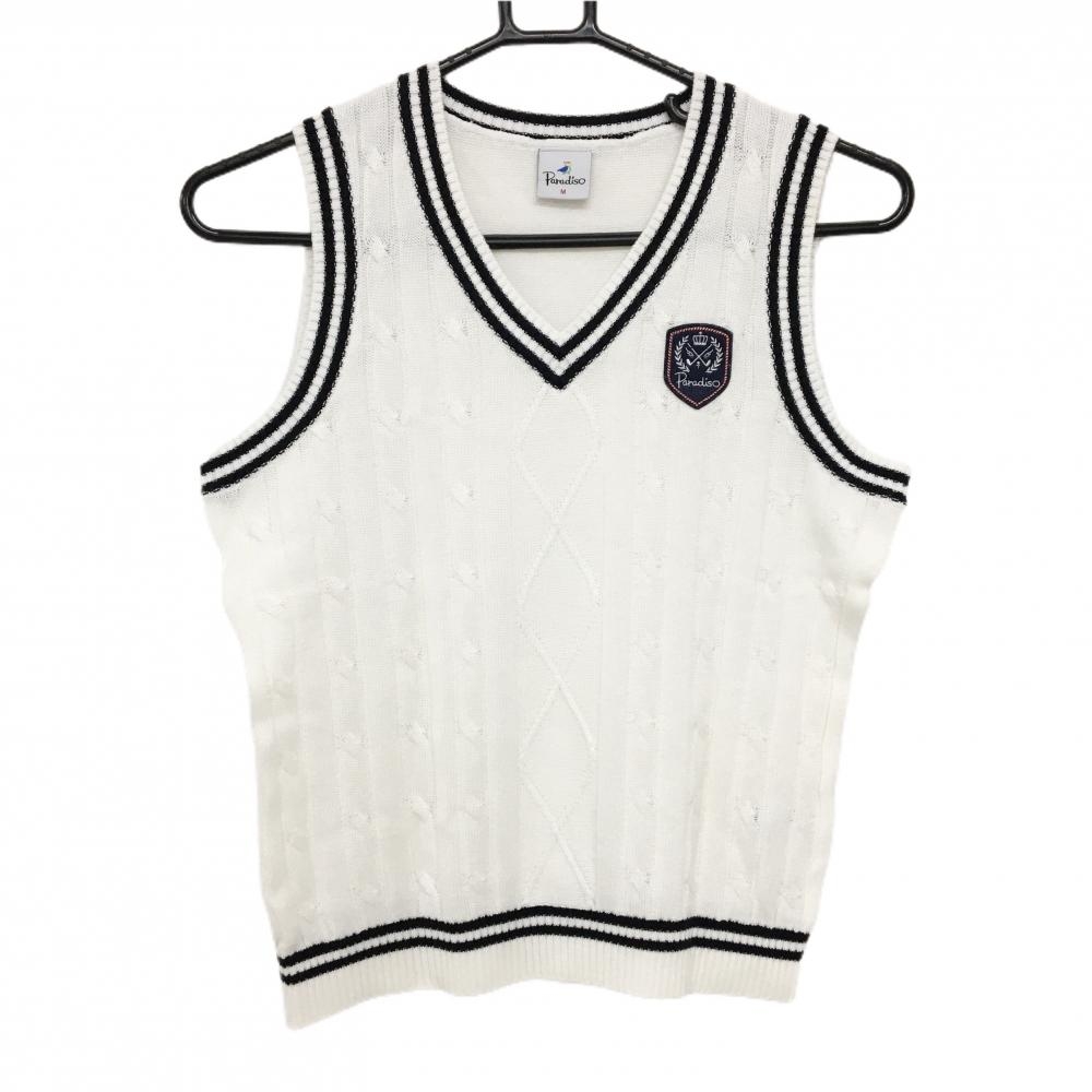 【美品】カッパ ニットベスト 白 ロゴ刺しゅう 裾ライン Vネック レディース M ゴルフウェア Kappa