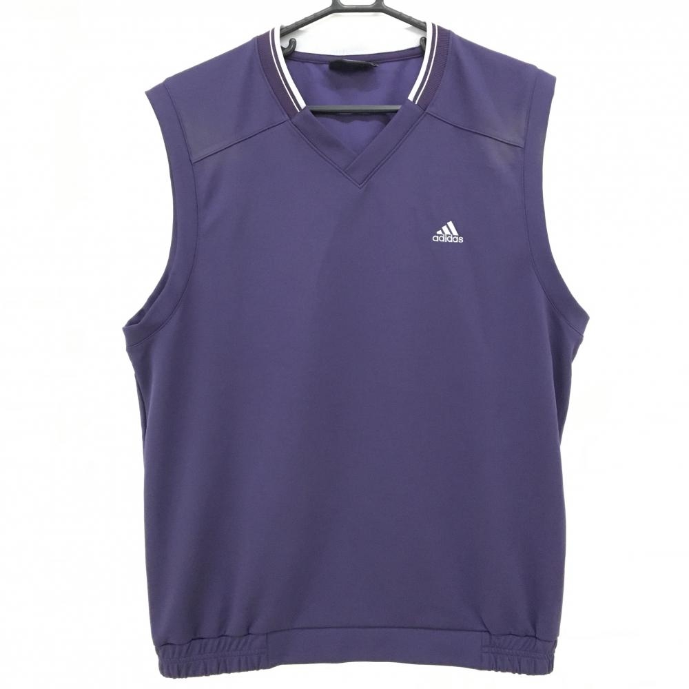 【超美品】アディダス ニットベスト 白×ライトグレー Vネック ロゴプリント メンズ L ゴルフウェア 2025年モデル adidas