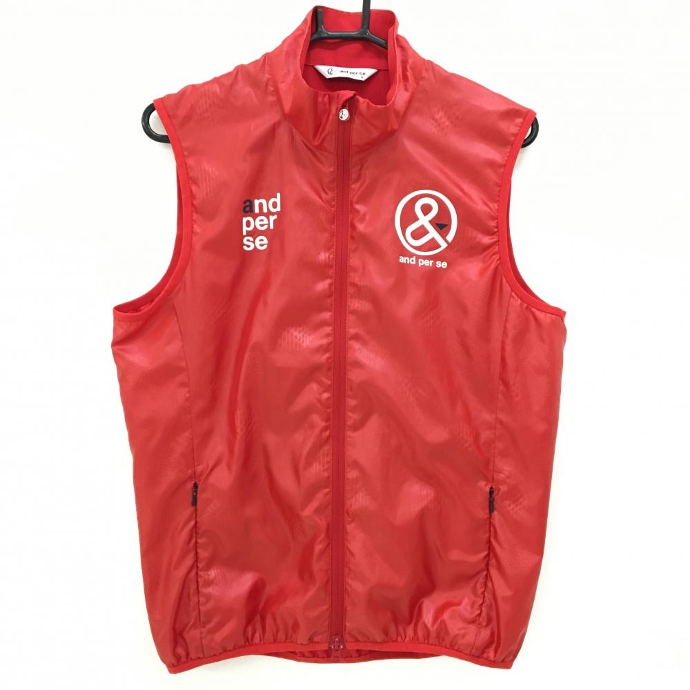 【新品】マンシングウェア アウターベスト レッド ワッペンネイビー 裏地メッシュ メンズ M ゴルフウェア Munsingwear