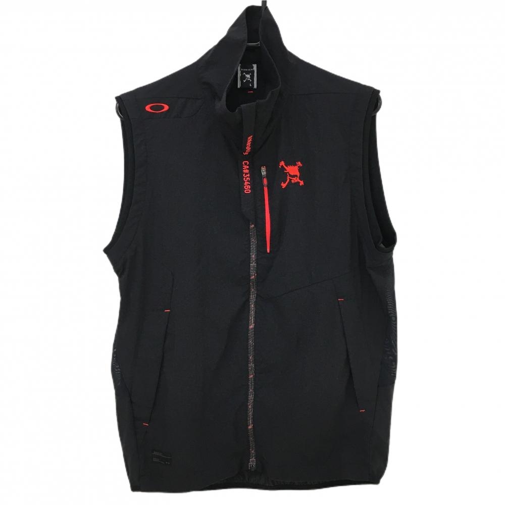 オークリー ニットジップベスト 黒×ライトグレー ダブルジップ メンズ XL ゴルフウェア Oakley