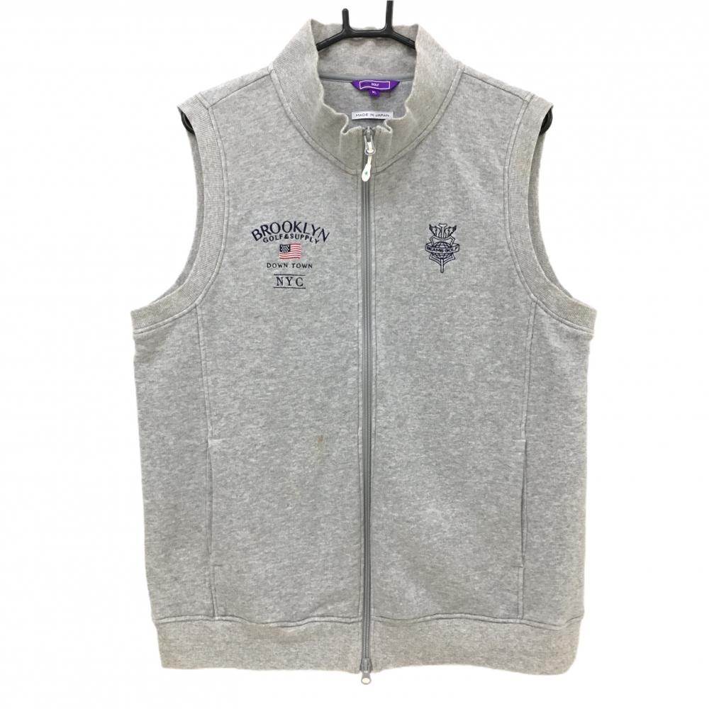 ビームスゴルフ ベスト グレー×黒 ロゴ コットン100% レディース M ゴルフウェア BEAMS GOLF