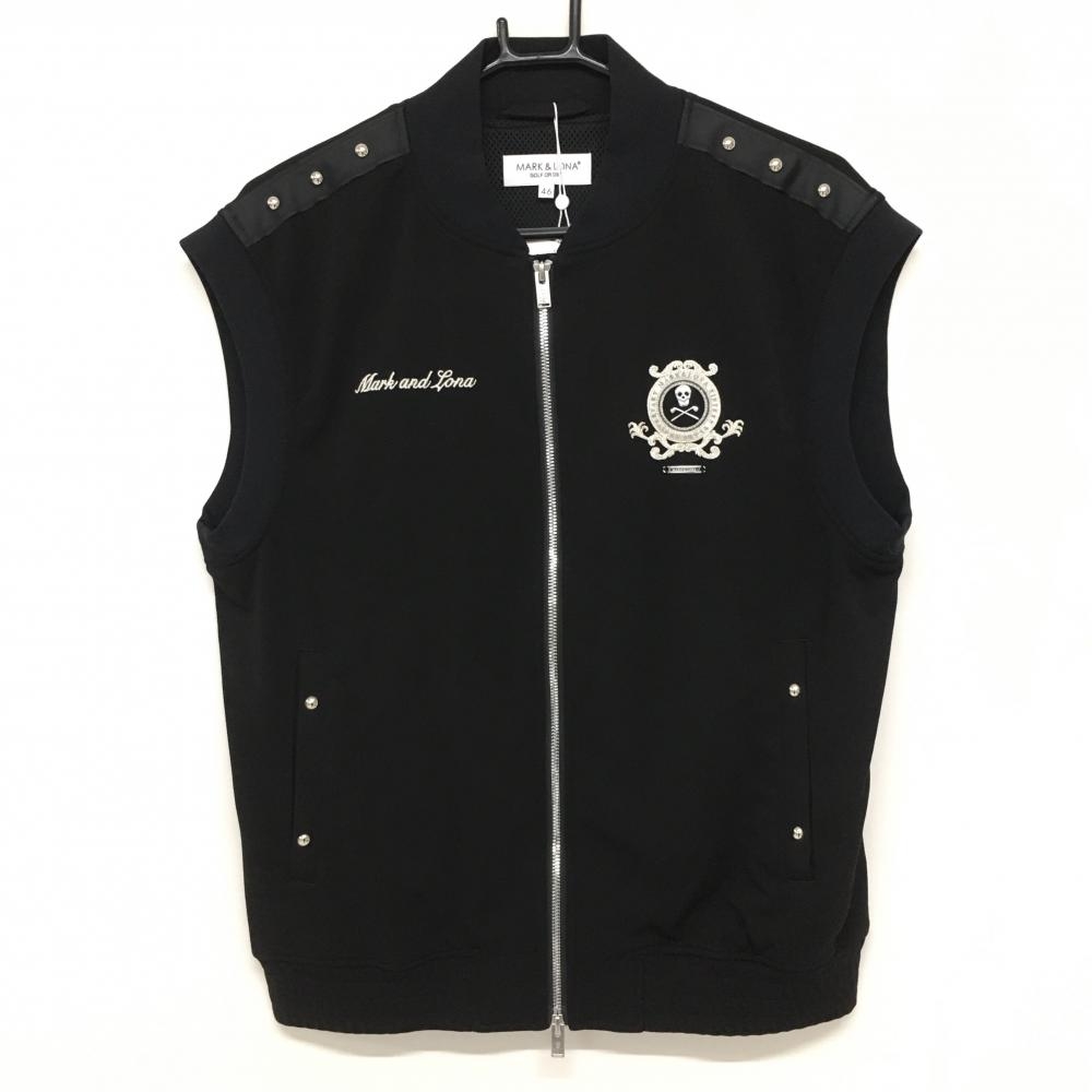 【美品】マークアンドロナ ニットベスト 白×黒 Vネック ワッペン スカル メンズ L ゴルフウェア MARK&LONA
