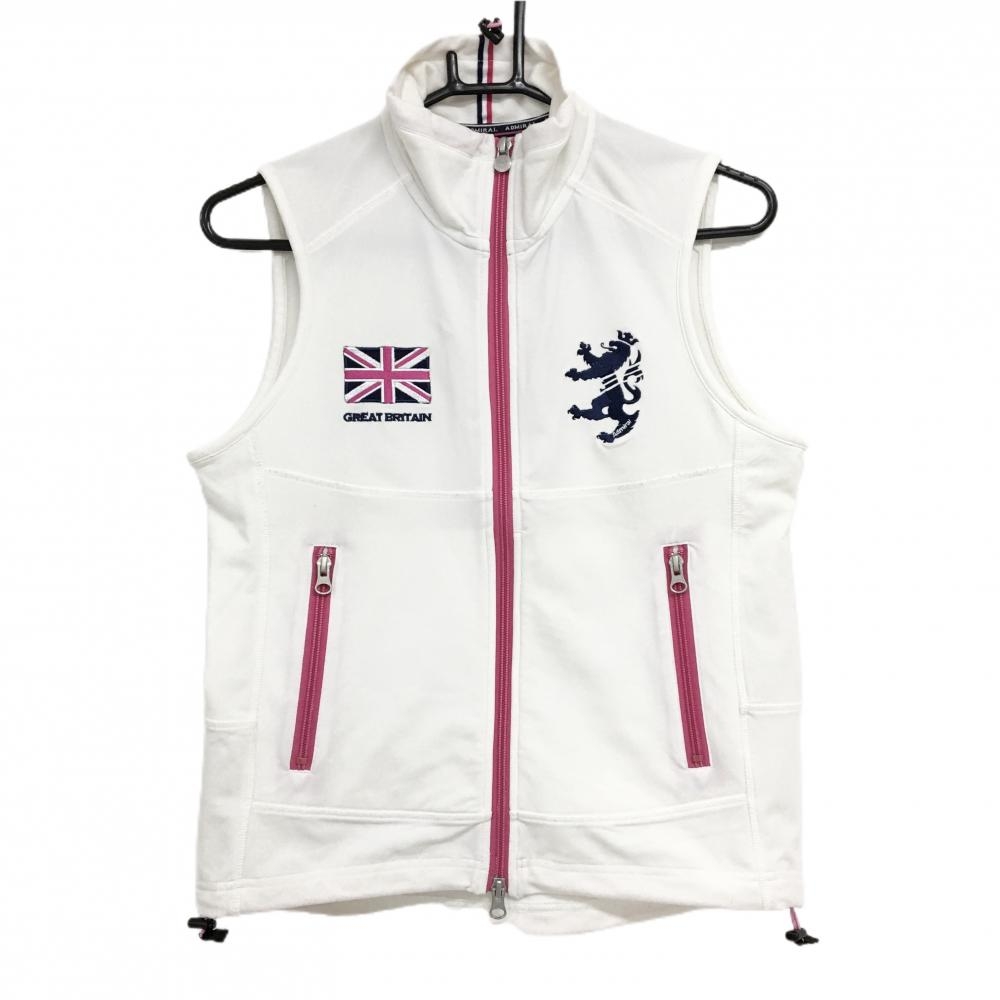 【美品】ニューバランスゴルフ ファーベスト 白 ロゴ地模様 胸ポケット レディース 1(M) ゴルフウェア New Balance