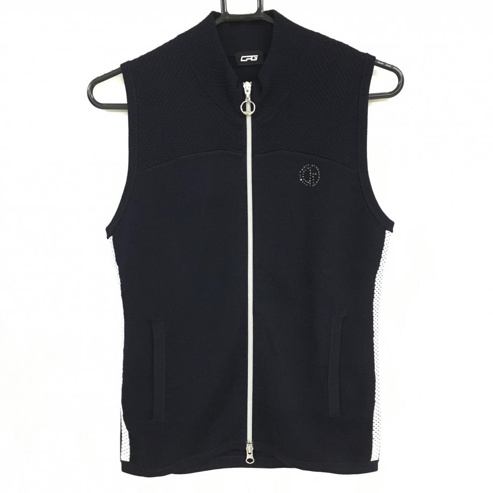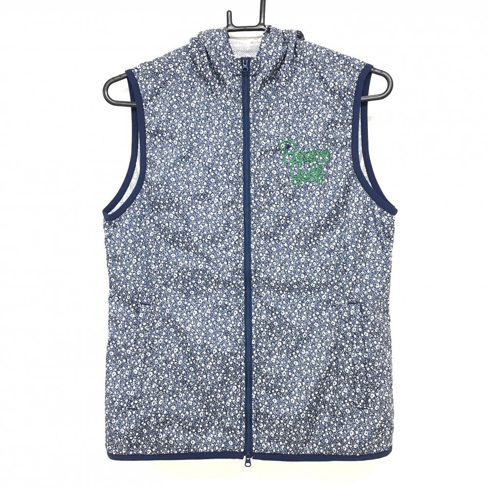 【新品】PGGパーリーゲイツ 中綿ベスト ネイビー×白 背面ロゴ レディース 1(M) ゴルフウェア PEARLY GATES