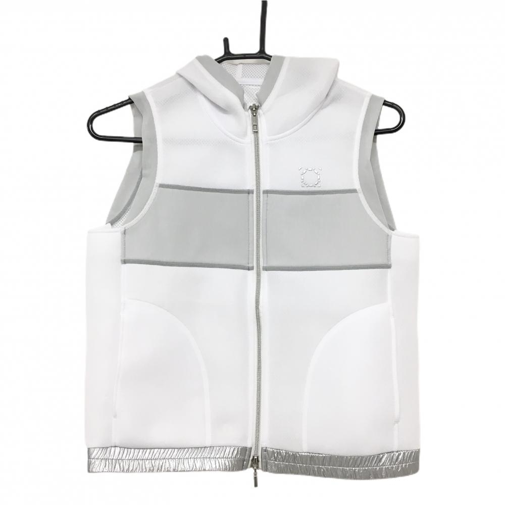 ヒールクリーク 2WAYアウターベスト 白 フード着脱可 裏地付 ダブルジップ レディース 42(L) ゴルフウェア Heal Creek