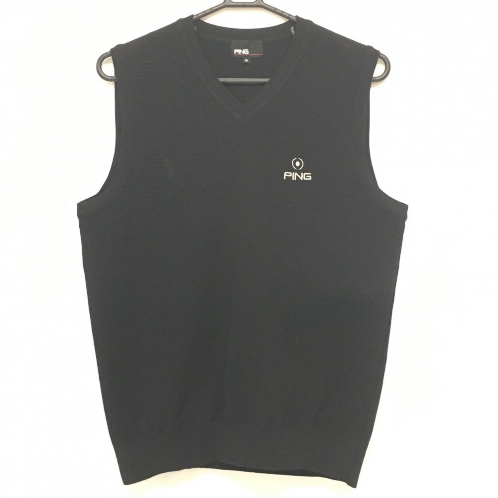【超美品】ピン ニットベスト 杢ダークグレー ロゴ刺しゅう メンズ M ゴルフウェア 2023年モデル PING