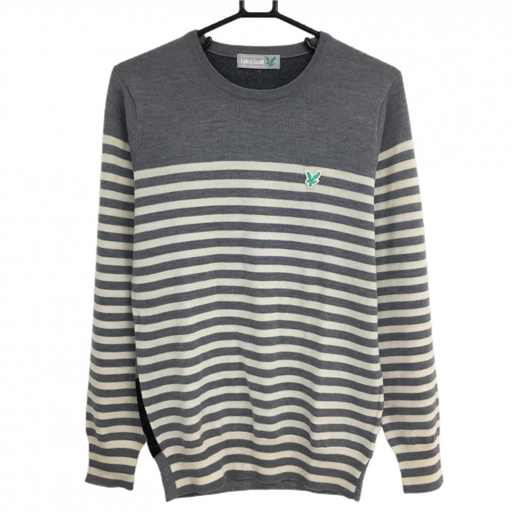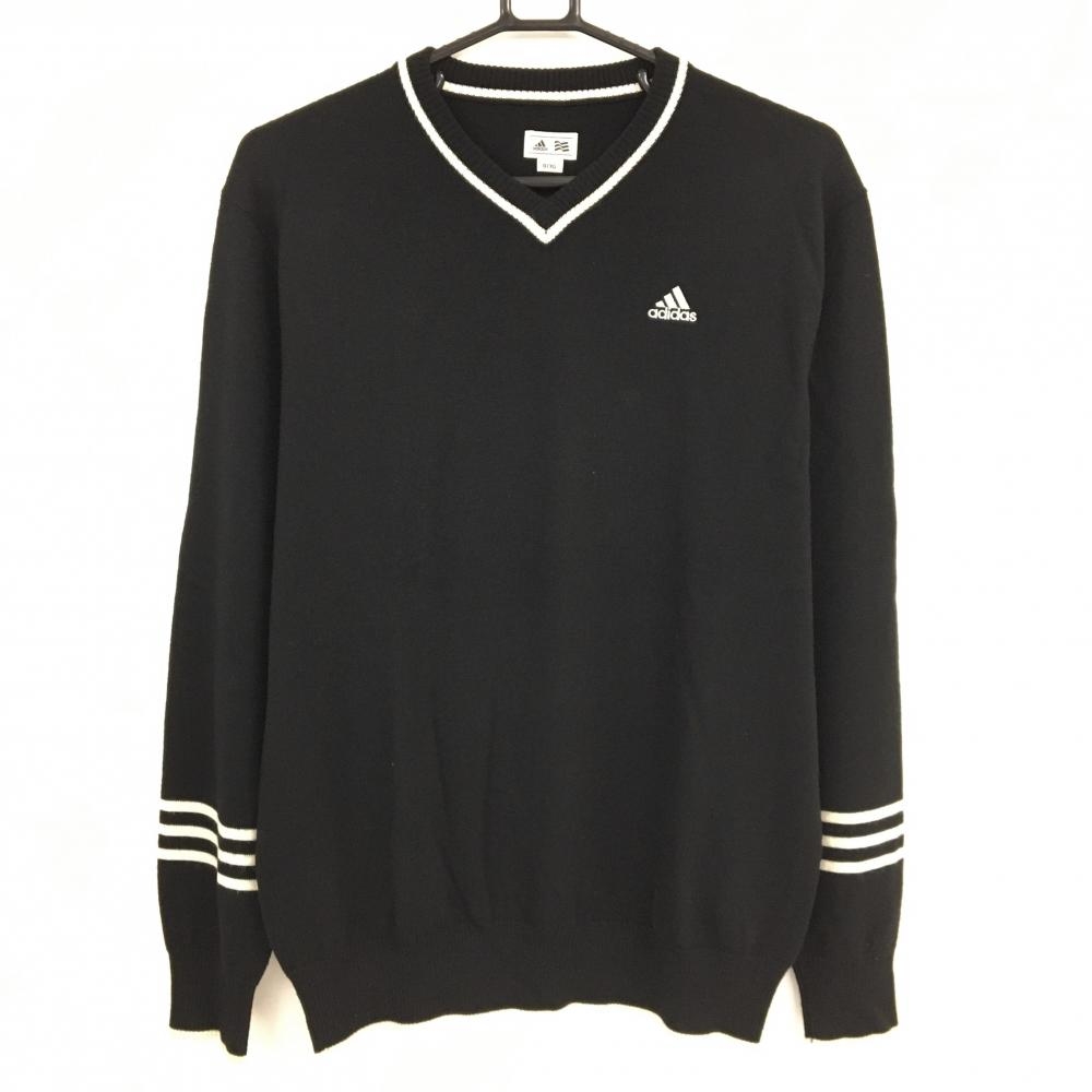 アディダス セーター グレー×黒 ロゴ刺しゅう 袖3ライン ウール混 レディース S/P ゴルフウェア adidas