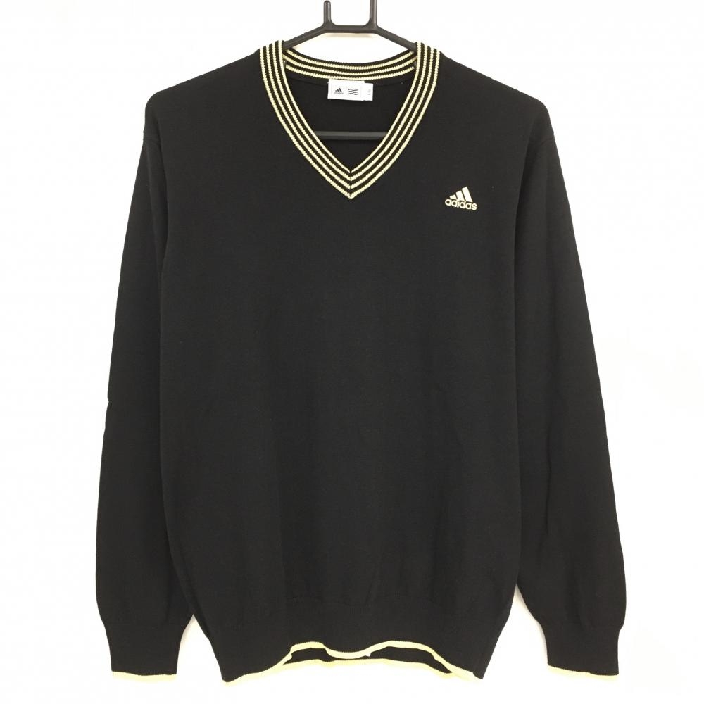【美品】アディダス セーター イエロー×白 袖3ライン ウール混 ニット レディース M ゴルフウェア adidas