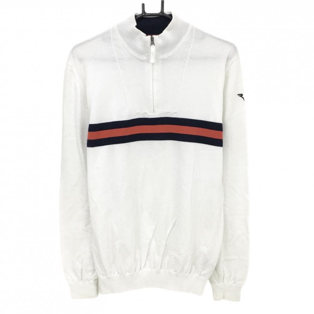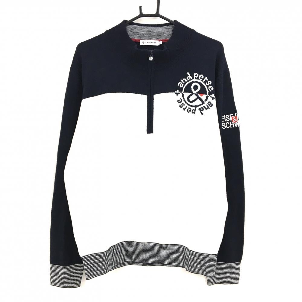 23区ゴルフ ハイネックセーター ネイビー×白 ボーダー ロゴ刺しゅう ニット ハーフジップ メンズ M ゴルフウェア 23区