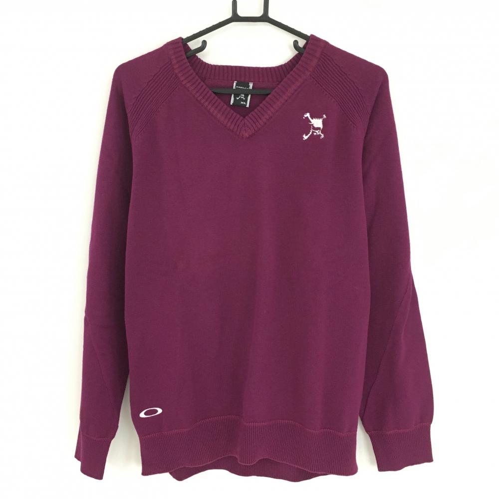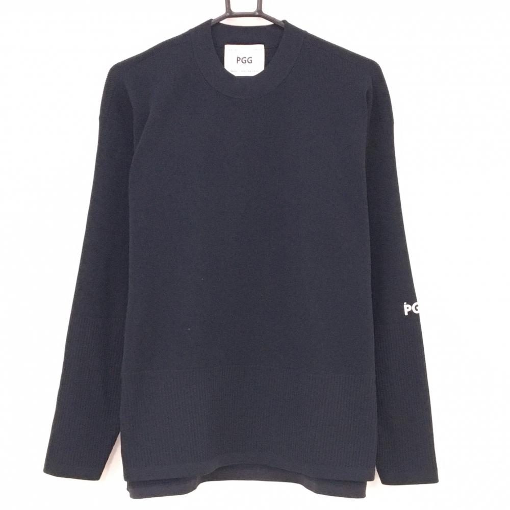 【美品】パーリーゲイツ セーター 黒×パープル 後ろロゴ ウール混 ニット レディース 0(S) ゴルフウェア PEARLY GATES