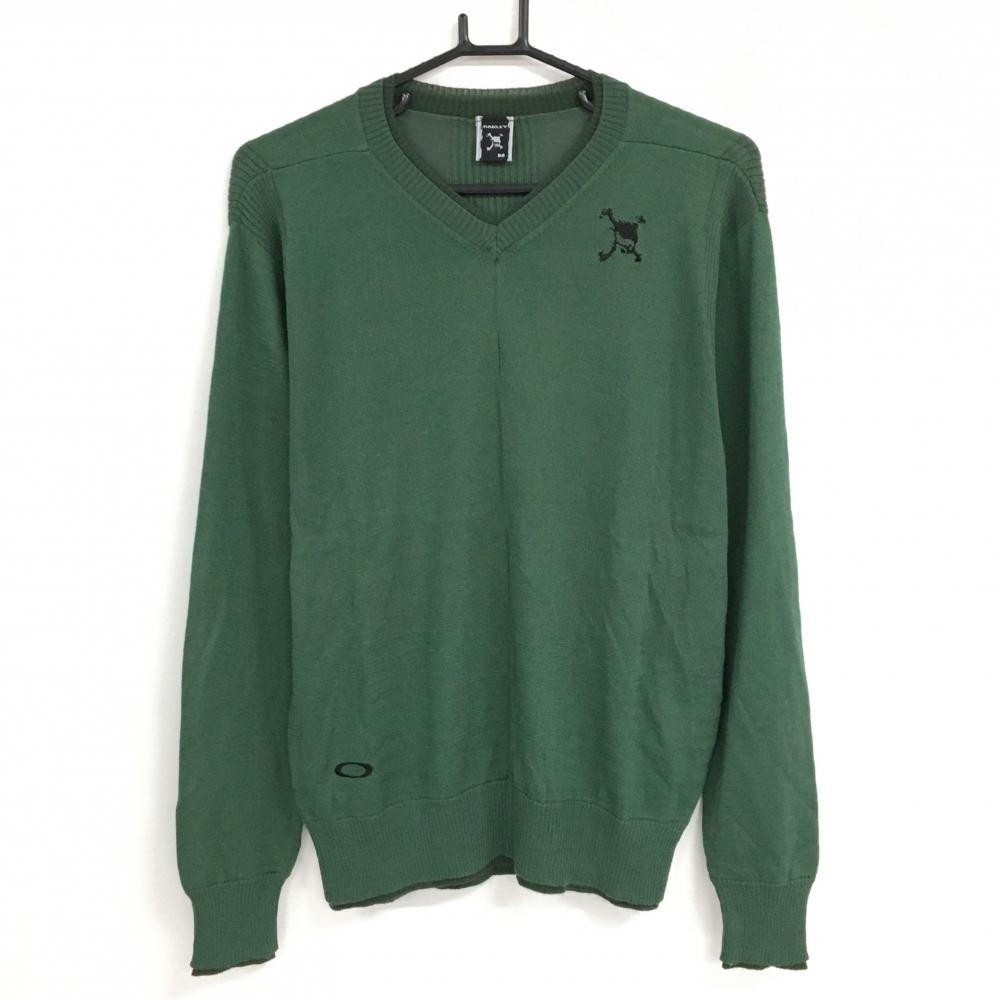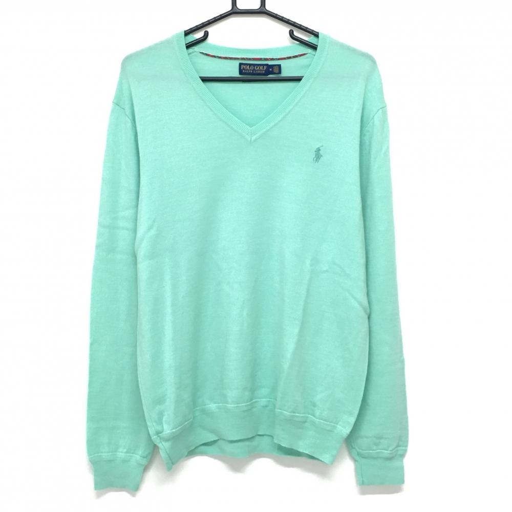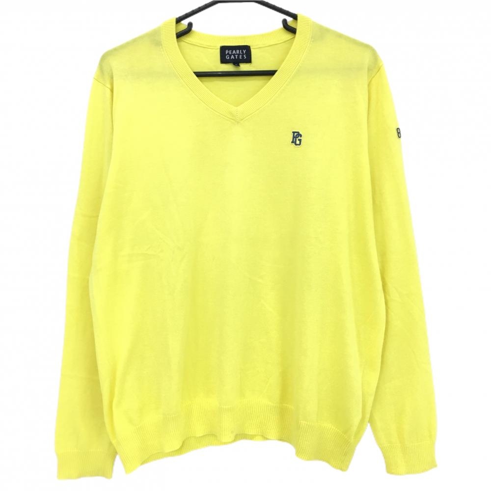 【美品】パーリーゲイツ セーター グリーンVネック 薄手 コットン ニット メンズ 5(L) ゴルフウェア PEARLY GATES