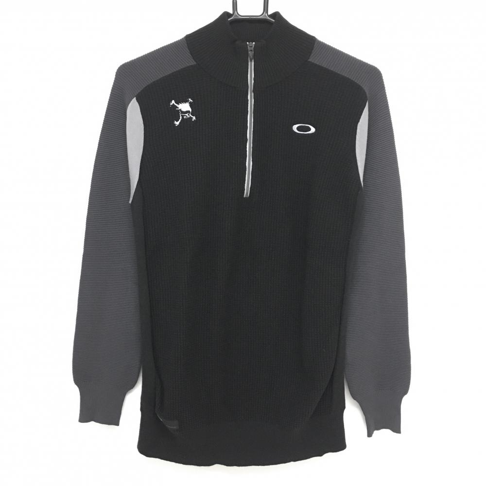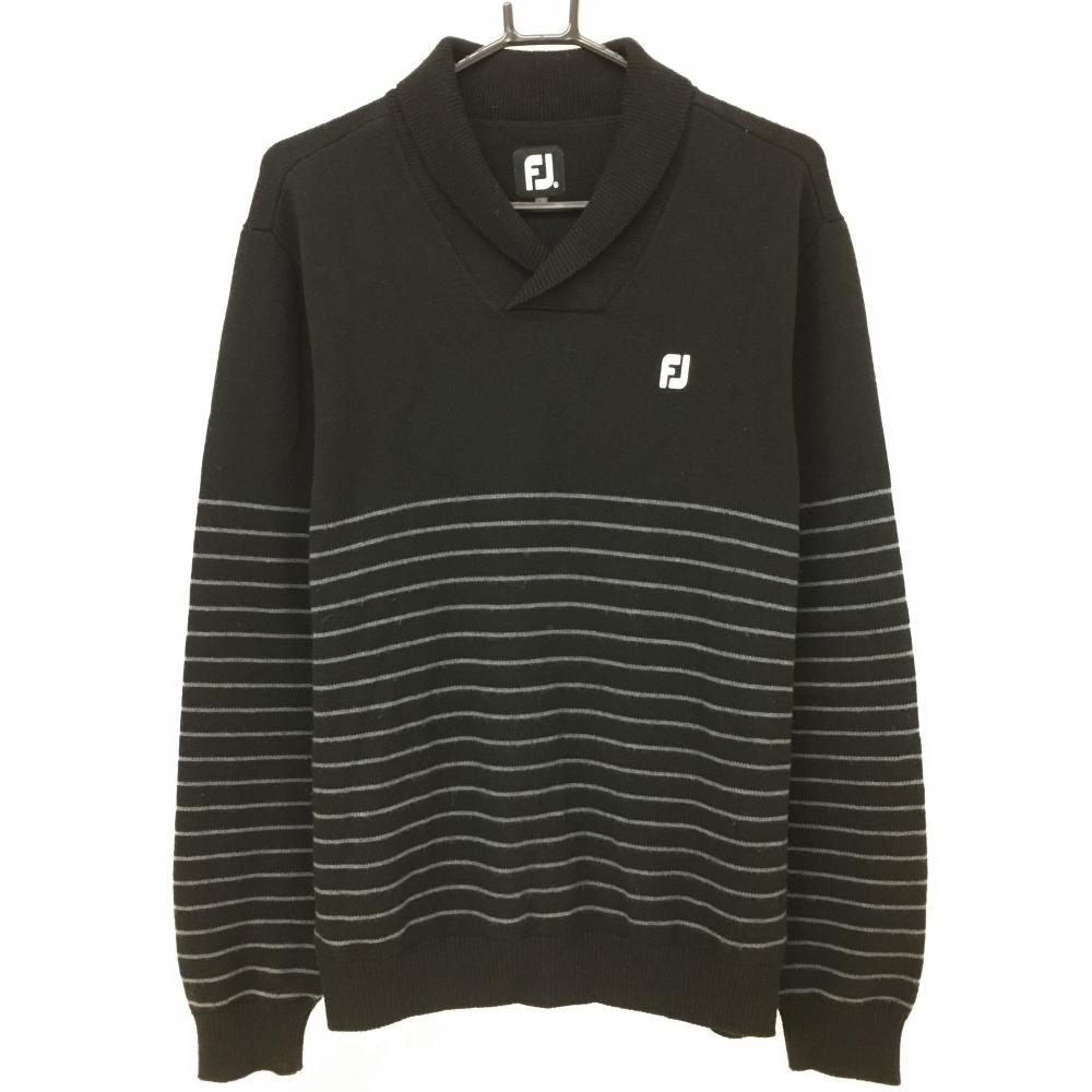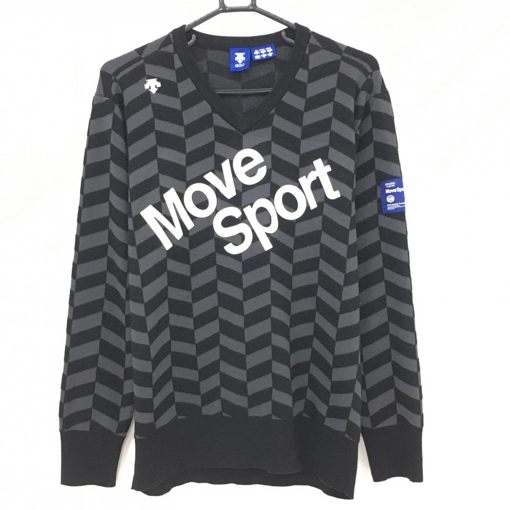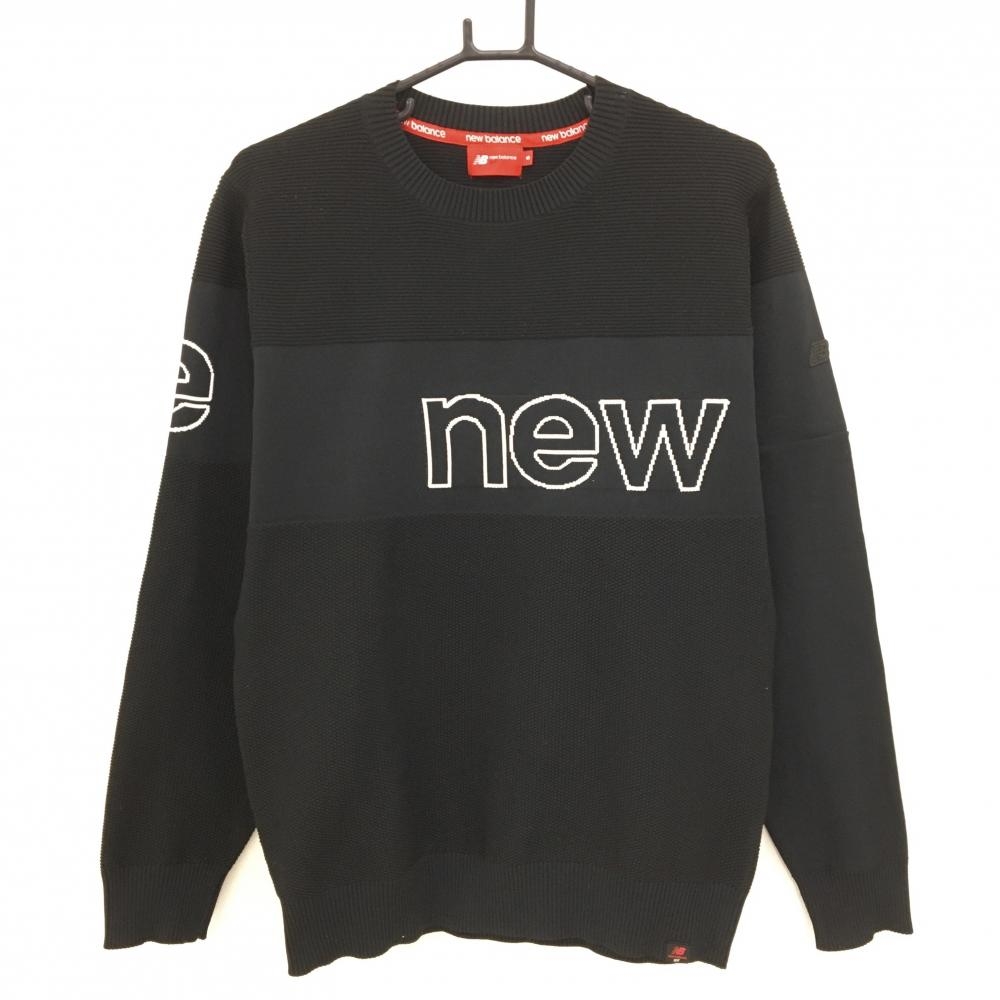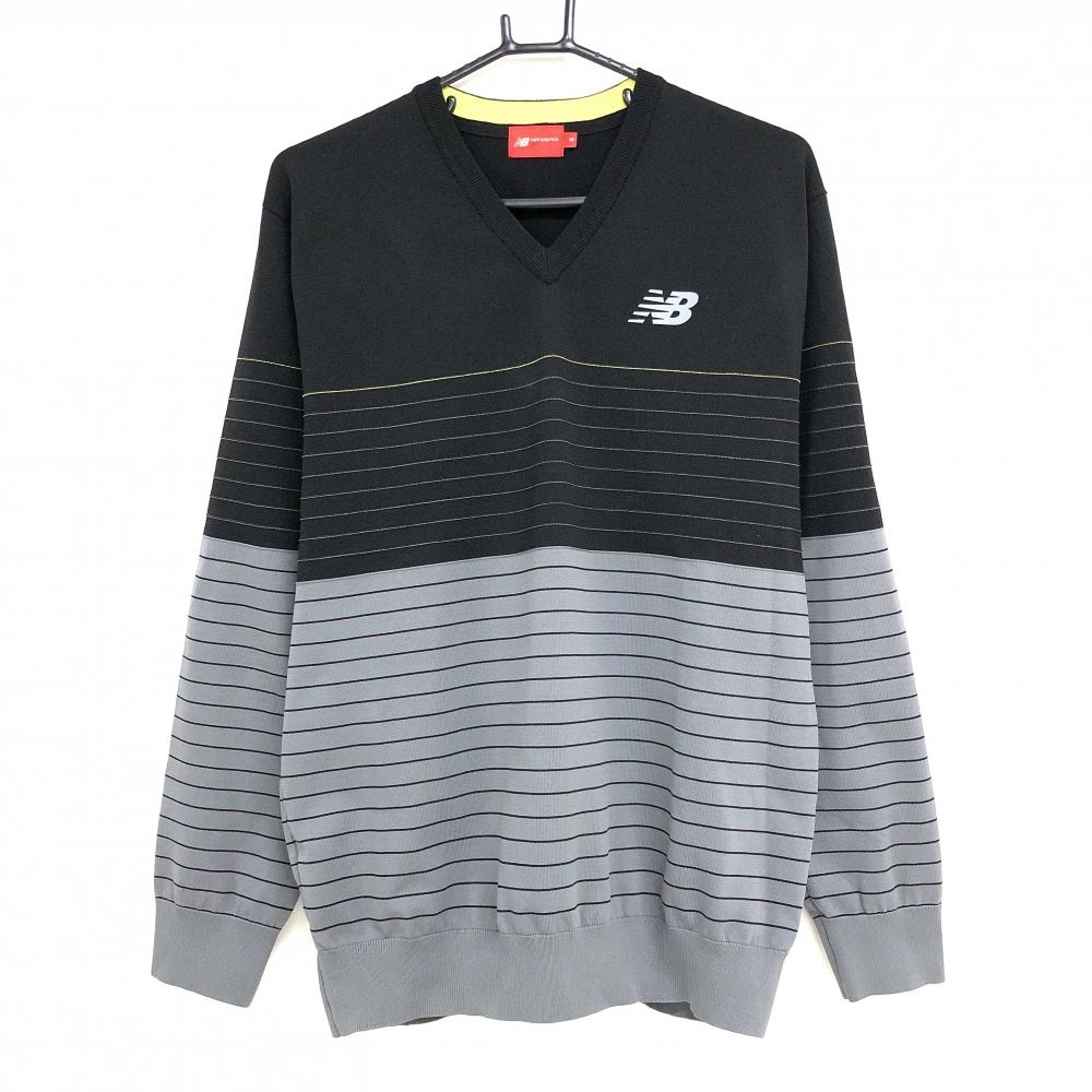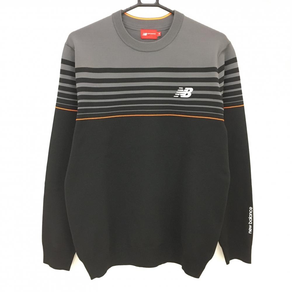 【美品】ニューバランスゴルフ セーター 黒×グレー ロゴ ニット レディース 2(L) ゴルフウェア New Balance