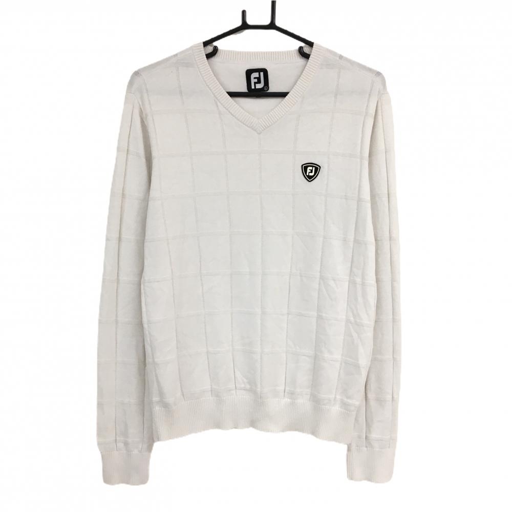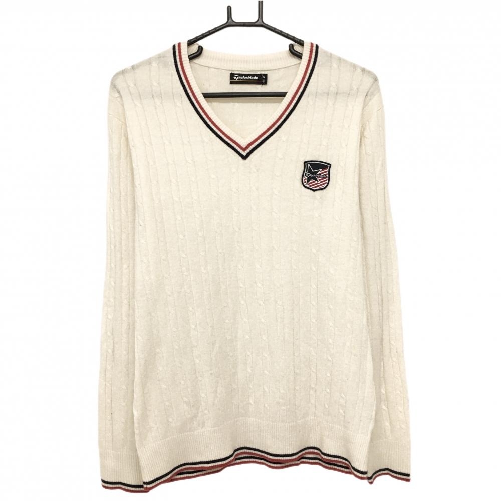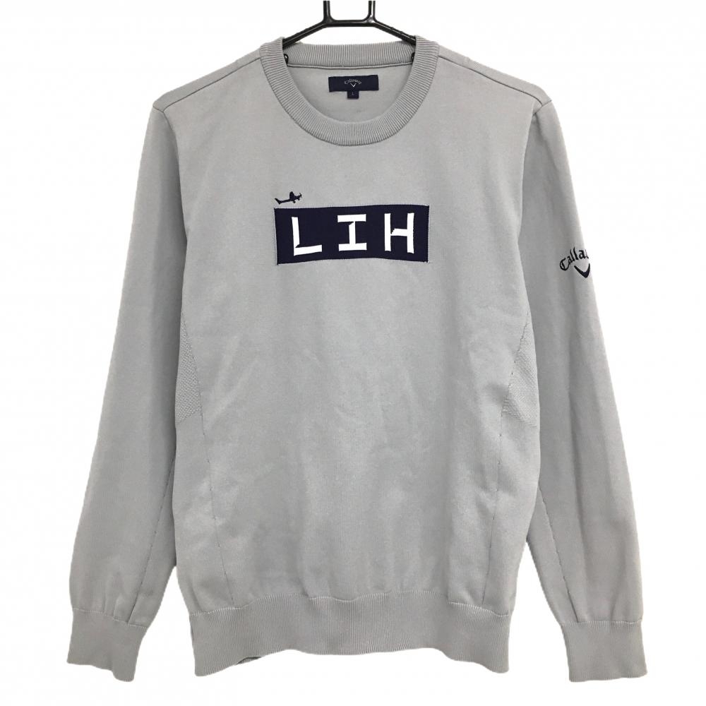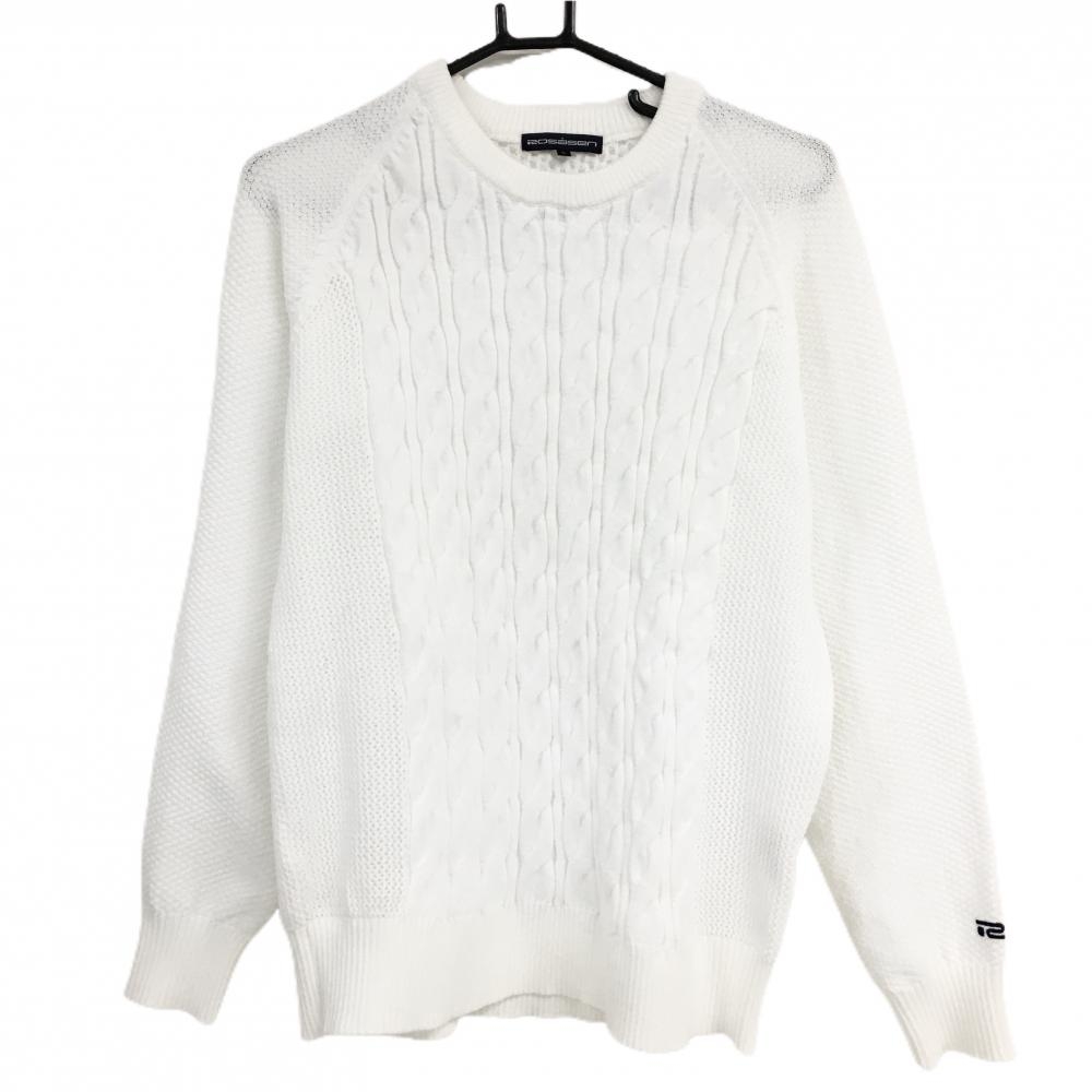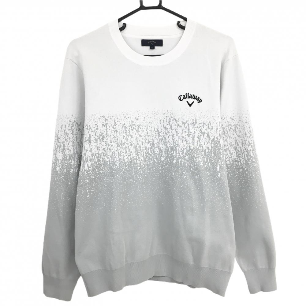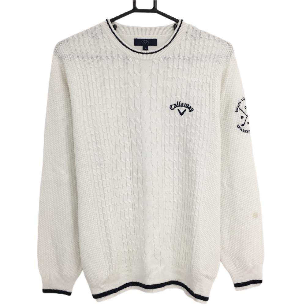 【美品】キャロウェイ セーター 白 一部ケーブル編み ロゴネイビー ニット メンズ L ゴルフウェア Callaway