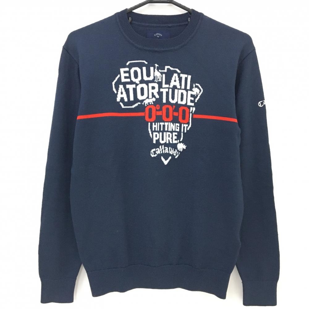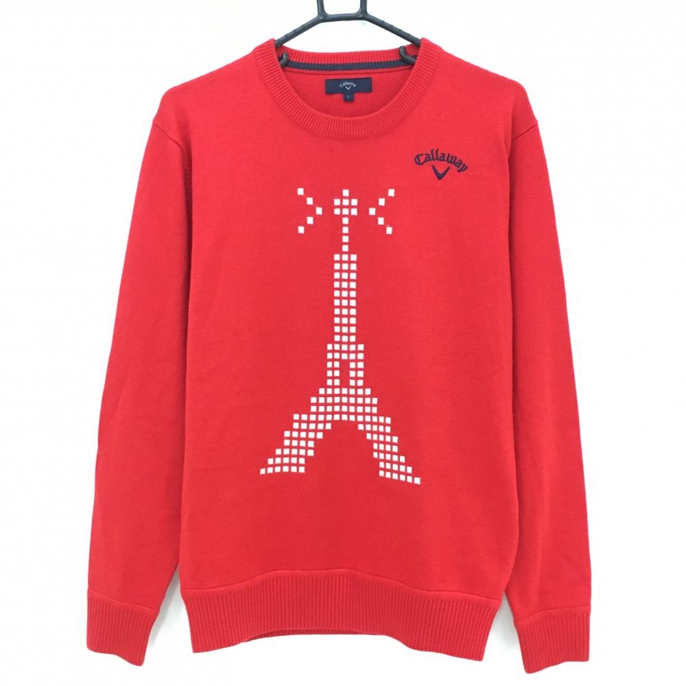 キャロウェイ セーター 白×レッド フロントロゴ ウール混 レディース L ゴルフウェア Callaway