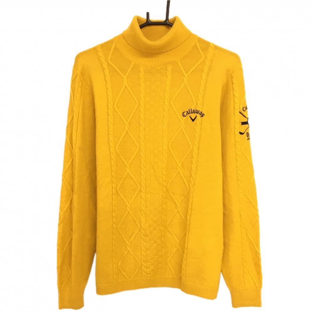 キャロウェイ タートルネックセーター ピンクレッド ケーブル編み ロゴ白 ウール混 ニット レディース L ゴルフウェア Callaway