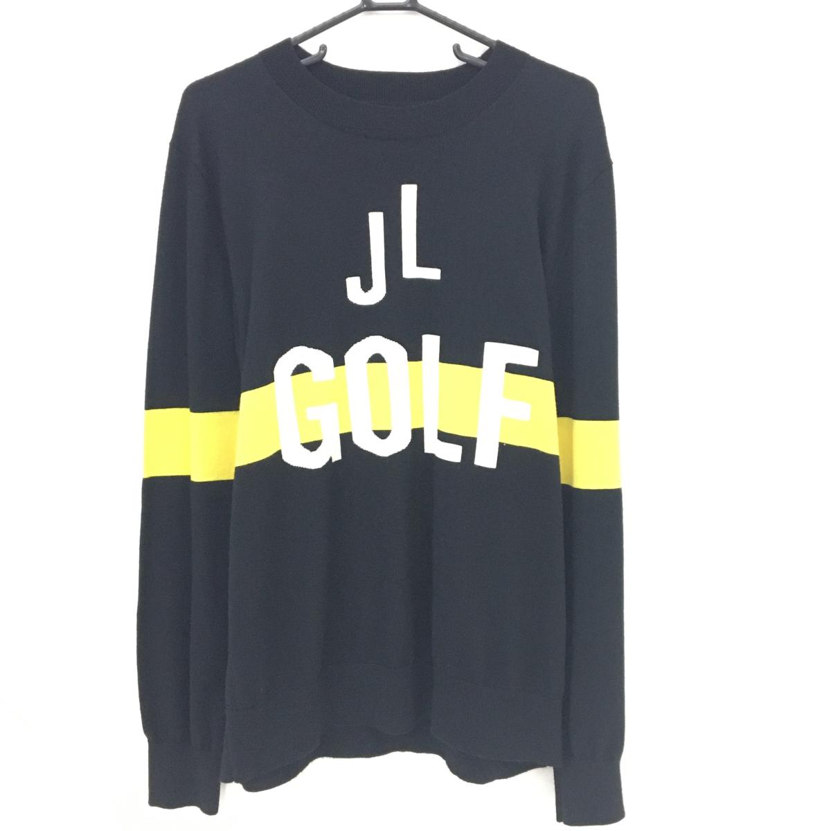 ジャックバニー セーター 黒×イエロー チェック ビッグロゴ ニット メンズ 4(M) ゴルフウェア 2024年モデル Jack Bunny