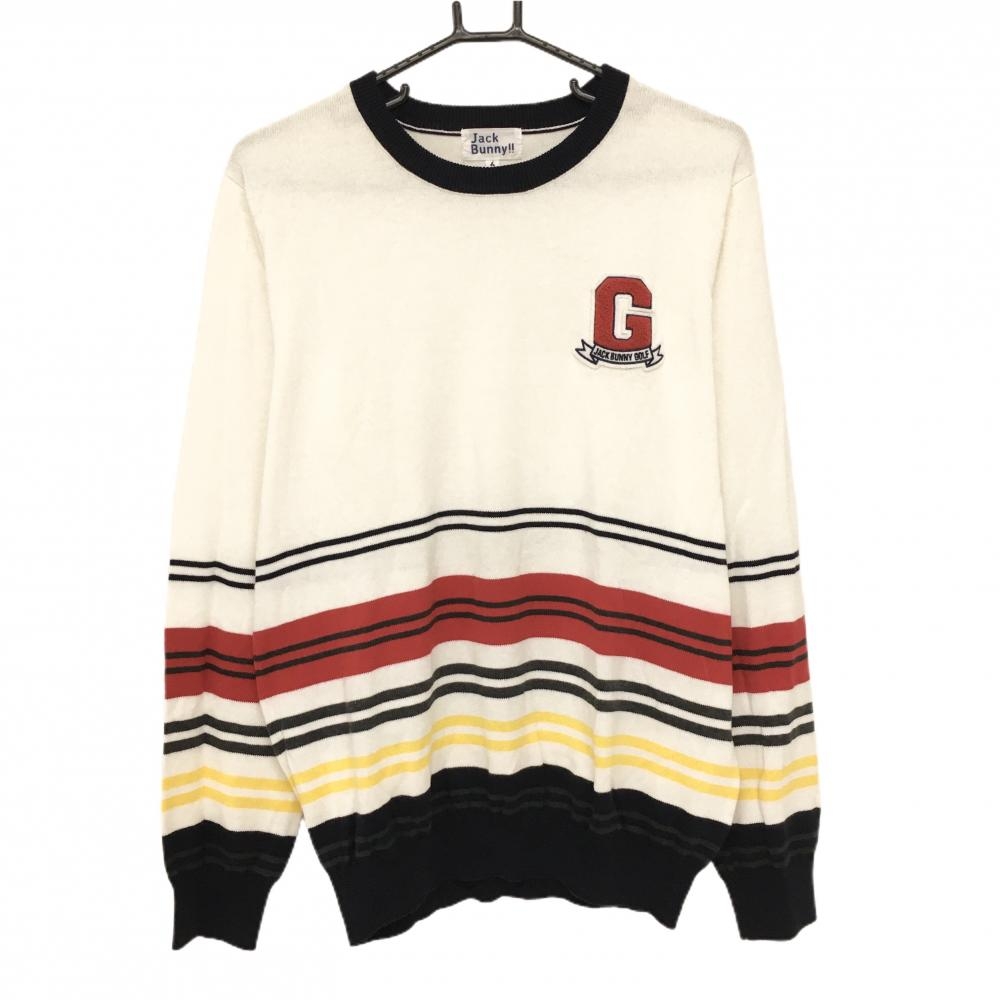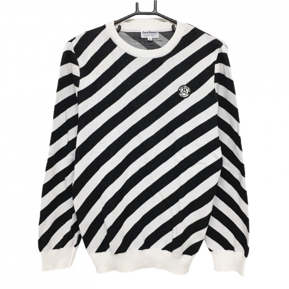 ジャックバニー セーター 白×黒 フロッキーワッペン ニット ウール混 レディース 2(L) ゴルフウェア Jack Bunny