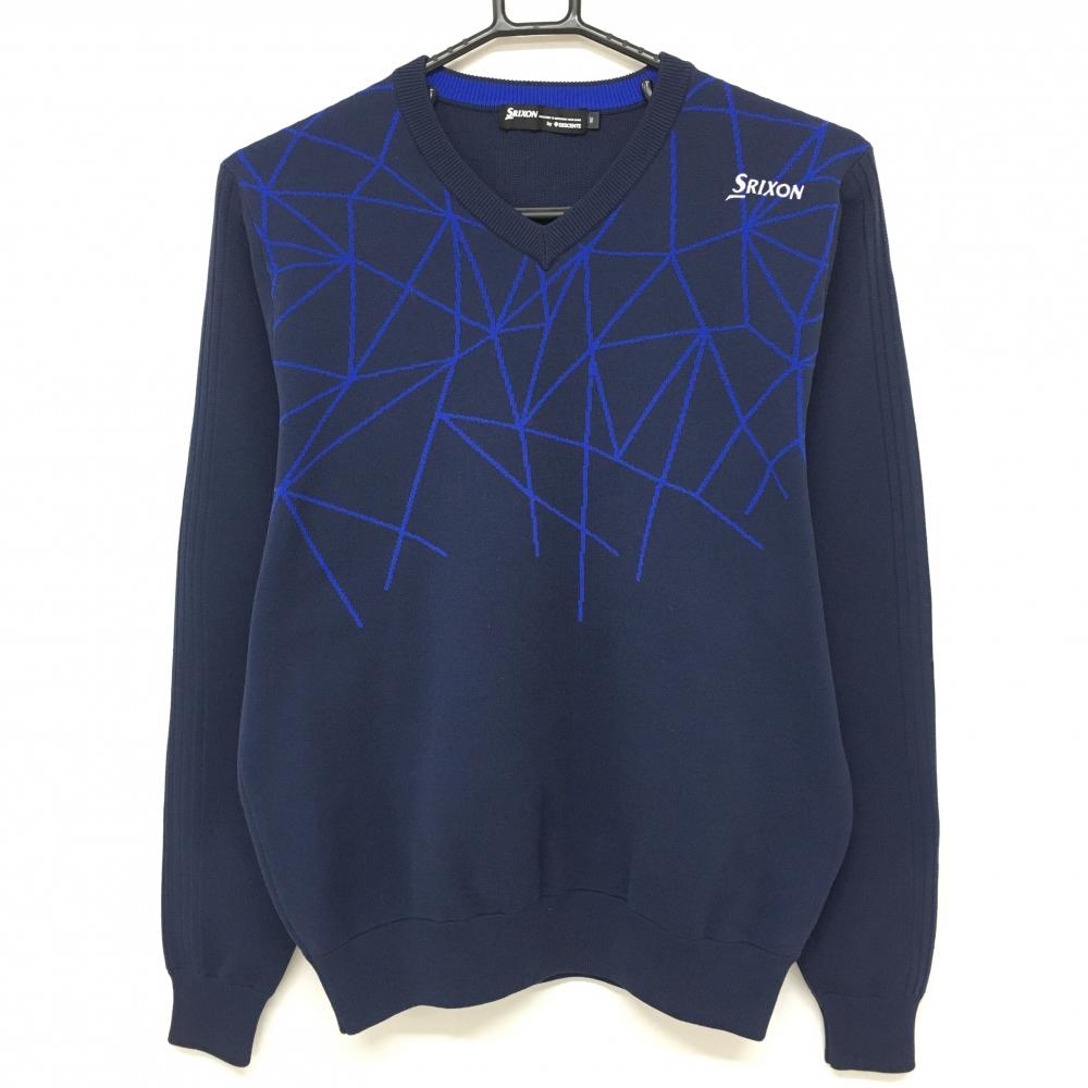 【超美品】パーリーゲイツ セーター ネイビー ロゴ白 ストレッチ ニット メンズ 4(M) ゴルフウェア 2024年モデル PEARLY GATES