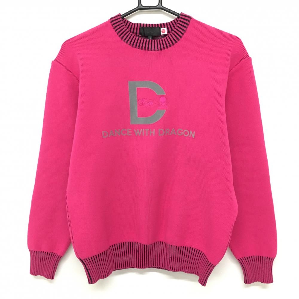 パーリーゲイツ セーター ピンク×黒 袖2ライン カシミヤ混 ニット レディース 1(M) ゴルフウェア PEARLY GATES