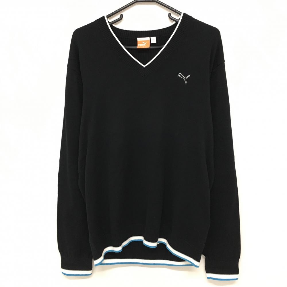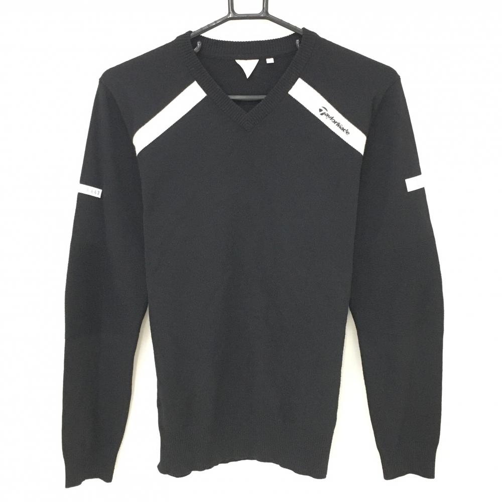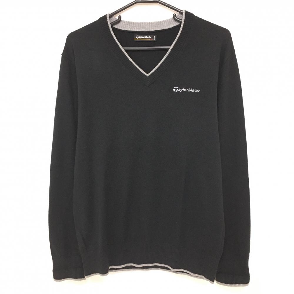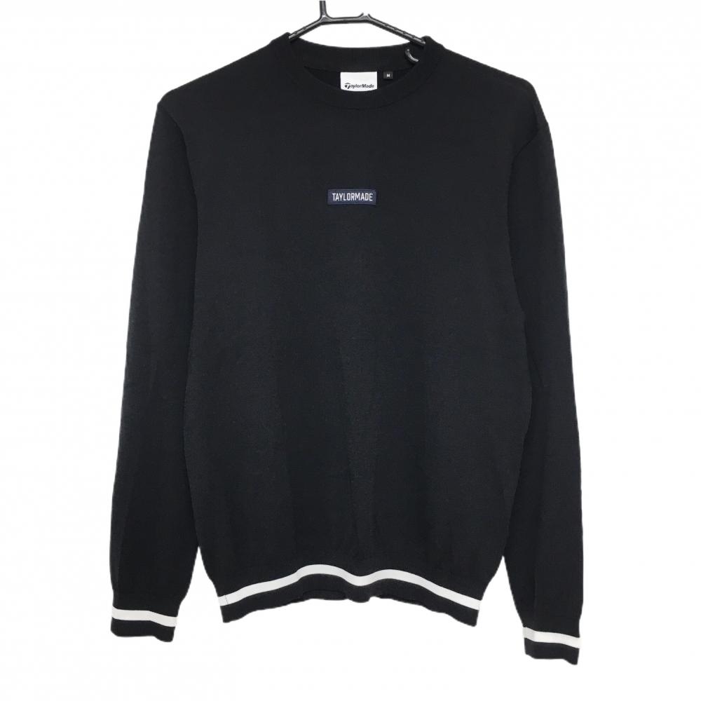 【美品】テーラーメイド セーター 黒×ブルー 袖・裾ライン ウール混 ニット メンズ M ゴルフウェア TaylorMade