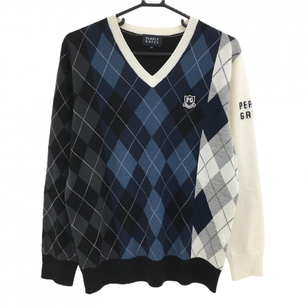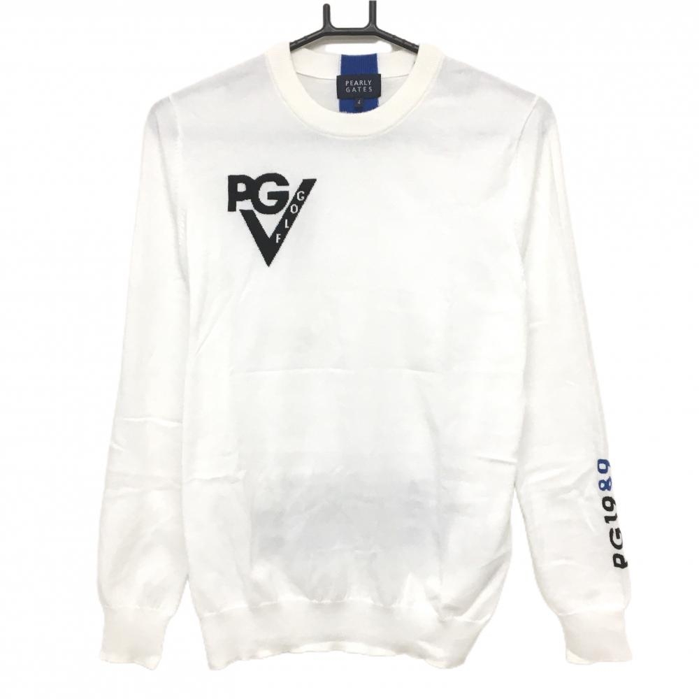 【超美品】パーリーゲイツ セーター 白 ロゴネイビー ストレッチ ニット メンズ 4(M) ゴルフウェア 2024年モデル PEARLY GATES