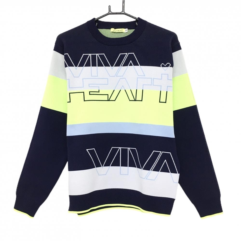 【美品】ビバハート セーター アイボリー×ネイビー ロゴ刺しゅう ウール混 ニット レディース 40(M) ゴルフウェア VIVA HEART
