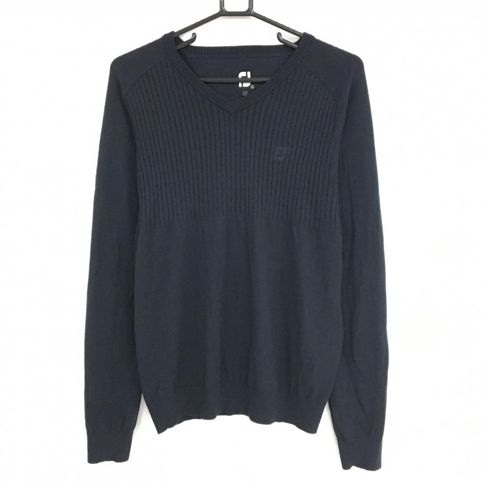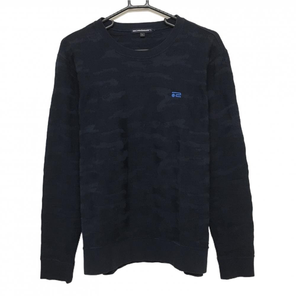 エフィカスオム セーター 杢ネイビー ロゴ白 コットン混 ニット メンズ 3(L) ゴルフウェア efficace