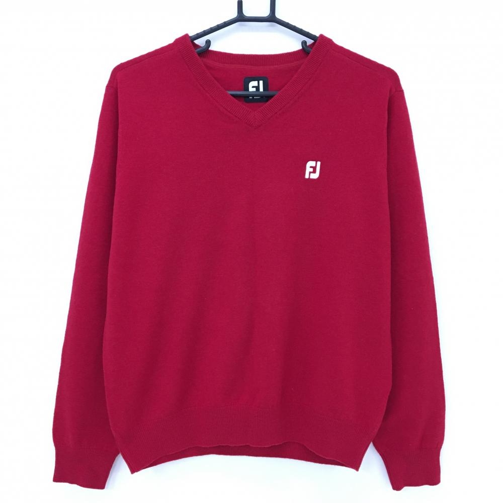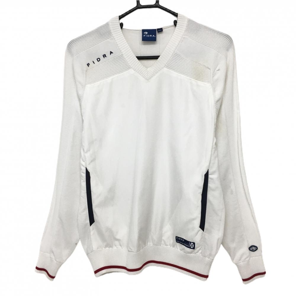 【美品】フィドラ セーター レッド×白 袖ケーブル編み ウール混 裏地付 ニット レディース M/M ゴルフウェア FIDRA