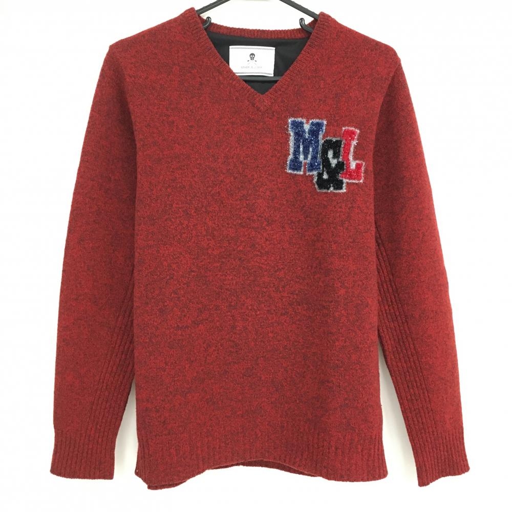 【美品】ブラックアンドホワイト セーター レッド ロゴ刺しゅう ウール100% ニット メンズ L ゴルフウェア Black&White
