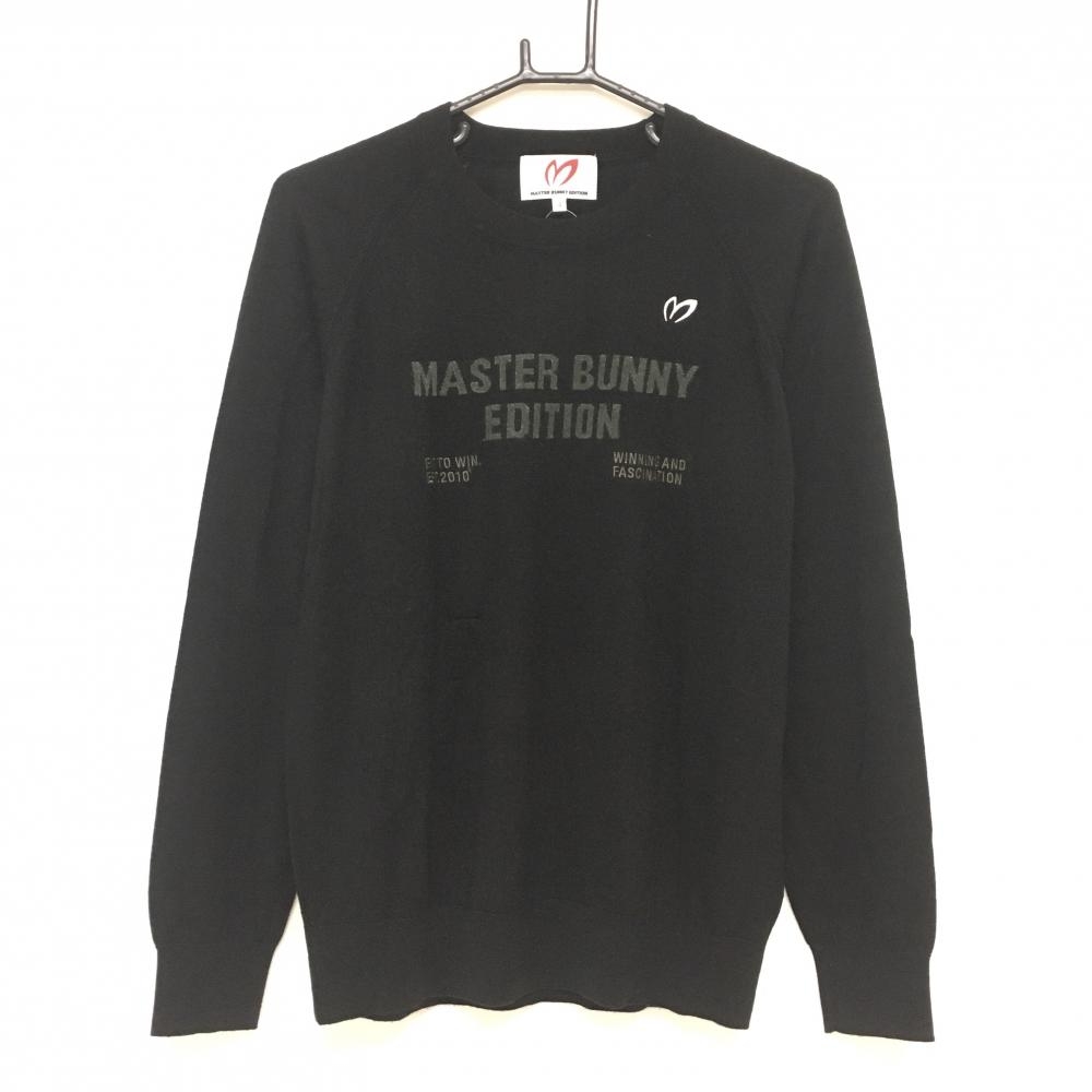 【超美品】マスターバニー セーター 黒×白 ロゴ総柄 ウール混 メンズ 5(L) ゴルフウェア MASTER BUNNY EDITION