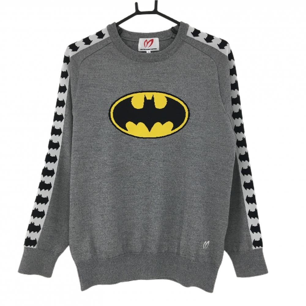 【美品】マスターバニー セーター イエロー×グレー フロントロゴ カシミヤ混 メンズ 4(M) ゴルフウェア MASTER BUNNY EDITION